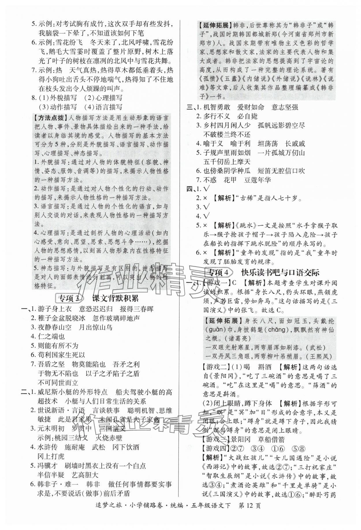 注:目前有些书本章节名称可能整理的还不是很完善,但都是按照顺序排列的,请同学们按照顺序仔细查找。练习册 2024年追梦之旅铺路卷五年级语文下册人教版 答案主要是用来给同学们做完题方便对答案用的,请勿直接抄袭。