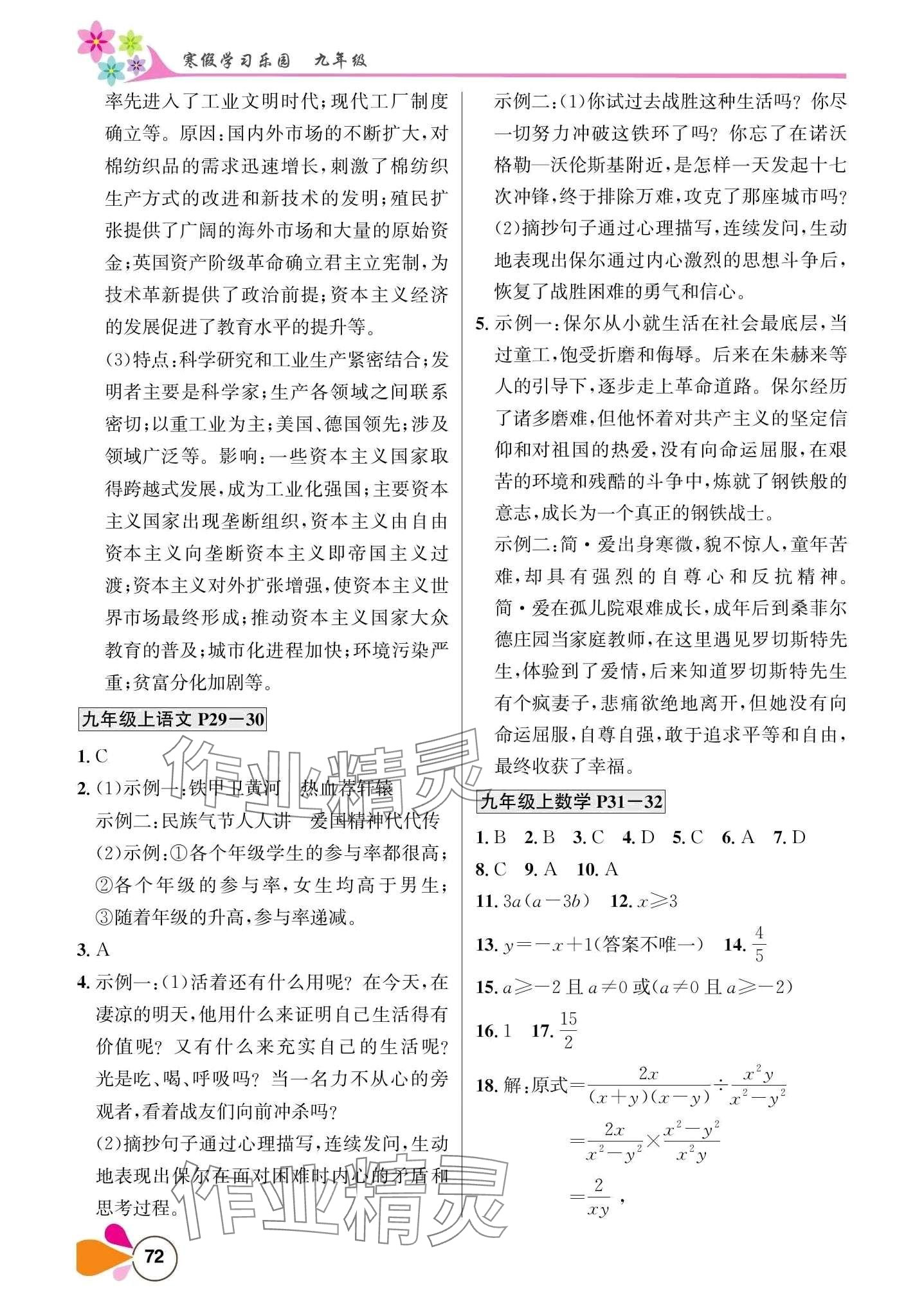 注:目前有些书本章节名称可能整理的还不是很完善,但都是按照顺序排列的,请同学们按照顺序仔细查找。练习册 2024年寒假学习乐园南方出版社九年级 答案主要是用来给同学们做完题方便对答案用的,请勿直接抄袭。