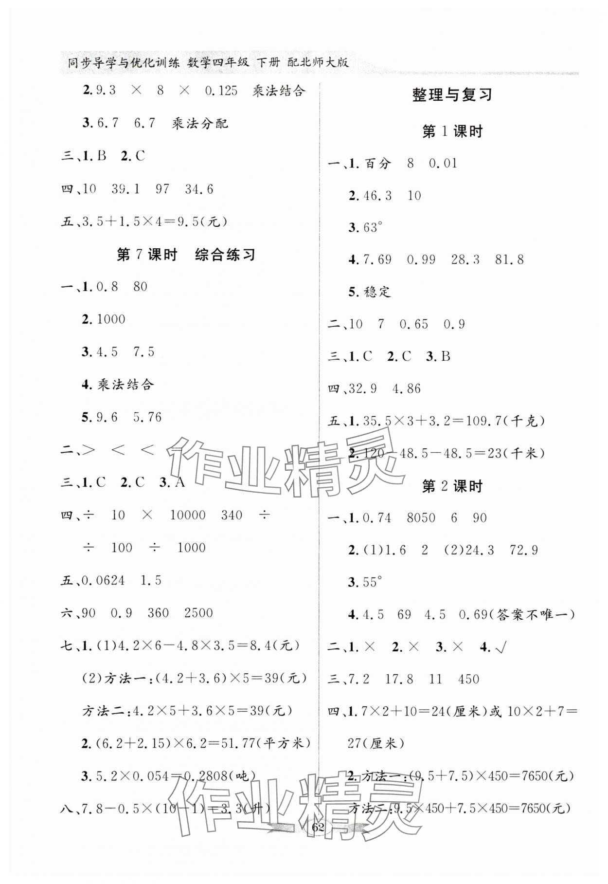 注:目前有些书本章节名称可能整理的还不是很完善,但都是按照顺序排列的,请同学们按照顺序仔细查找。练习册 2024年同步导学与优化训练四年级数学下册北师大版 答案主要是用来给同学们做完题方便对答案用的,请勿直接抄袭。