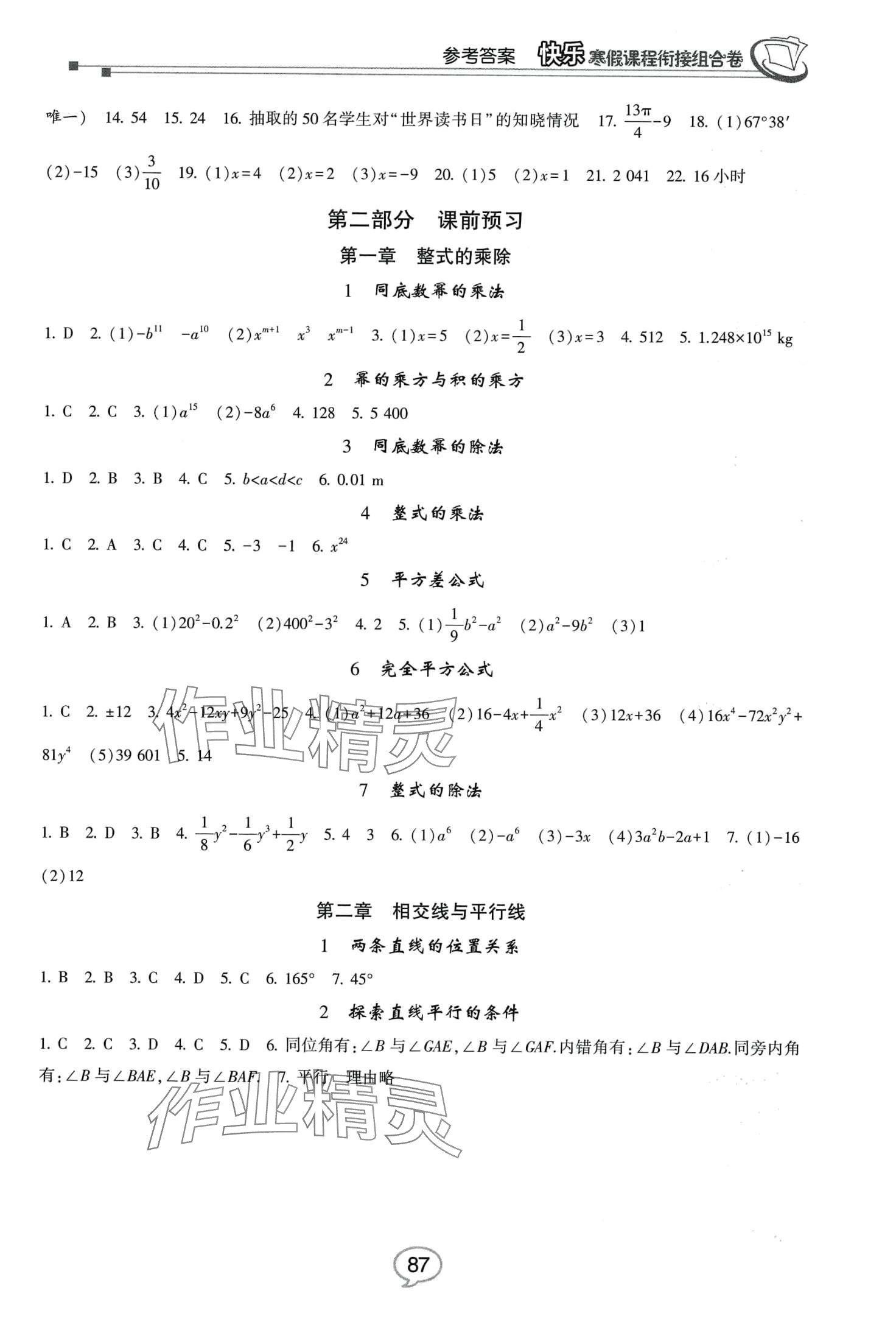 注:目前有些书本章节名称可能整理的还不是很完善,但都是按照顺序排列的,请同学们按照顺序仔细查找。练习册 2024年快乐寒假课程衔接组合卷七年级数学北师大版 答案主要是用来给同学们做完题方便对答案用的,请勿直接抄袭。