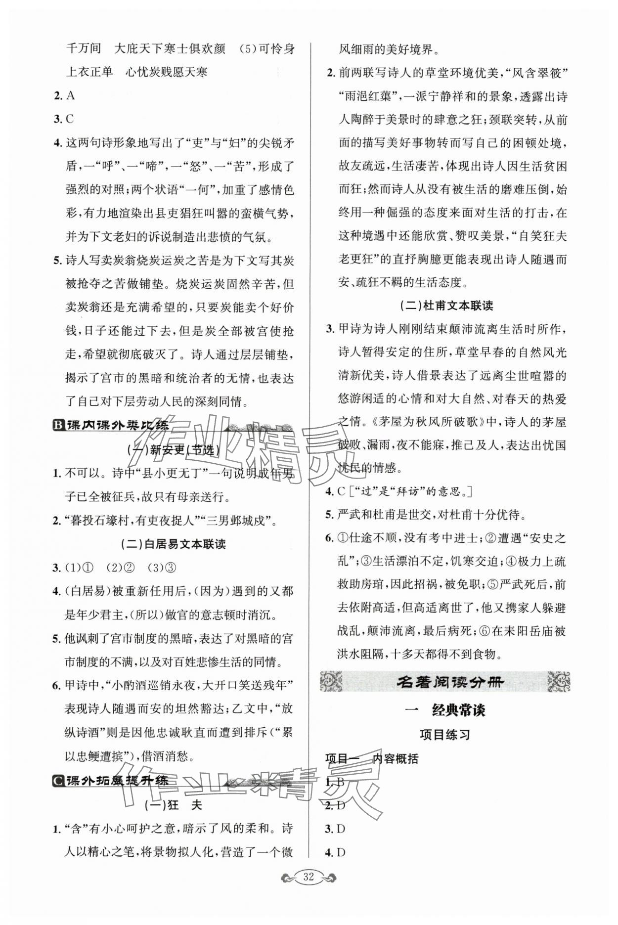 注:目前有些书本章节名称可能整理的还不是很完善,但都是按照顺序排列的,请同学们按照顺序仔细查找。练习册 2024年古诗文与名著阅读八年级语文下册人教版 答案主要是用来给同学们做完题方便对答案用的,请勿直接抄袭。