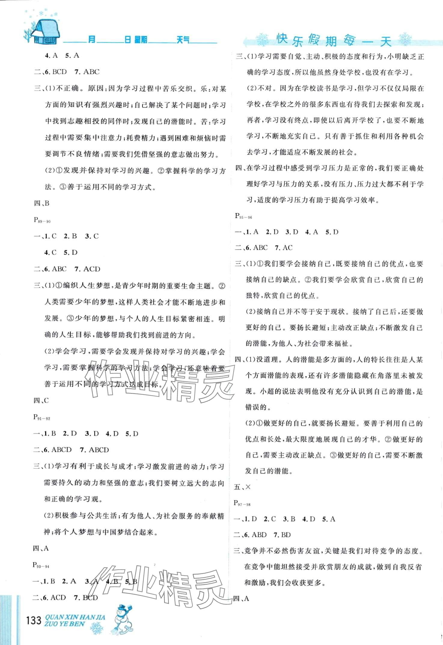 注:目前有些书本章节名称可能整理的还不是很完善,但都是按照顺序排列的,请同学们按照顺序仔细查找。练习册 2024年优秀生快乐假期每一天全新寒假作业本七年级 答案主要是用来给同学们做完题方便对答案用的,请勿直接抄袭。