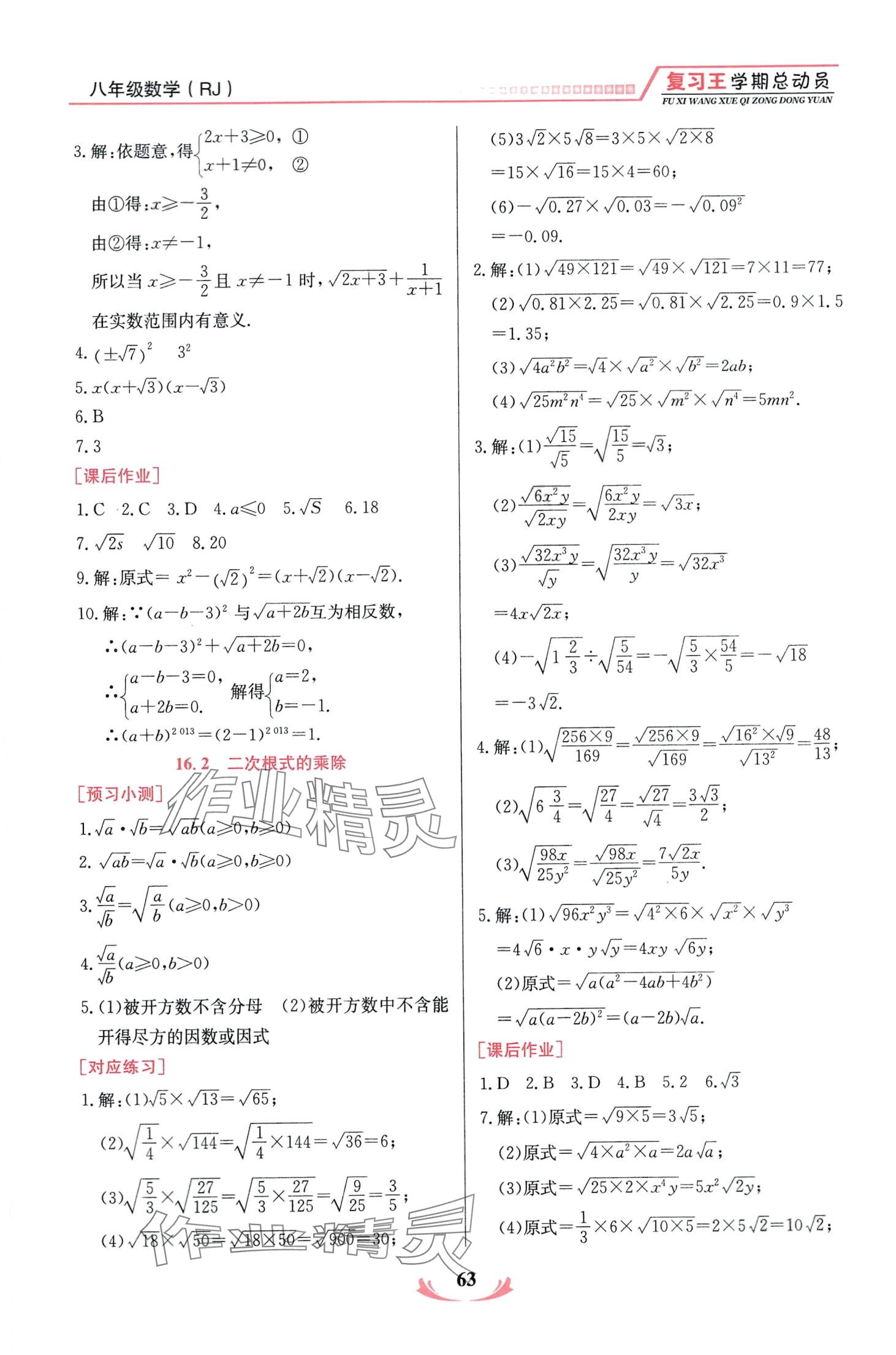 注:目前有些书本章节名称可能整理的还不是很完善,但都是按照顺序排列的,请同学们按照顺序仔细查找。练习册 2024年复习王学期总动员八年级数学人教版 答案主要是用来给同学们做完题方便对答案用的,请勿直接抄袭。