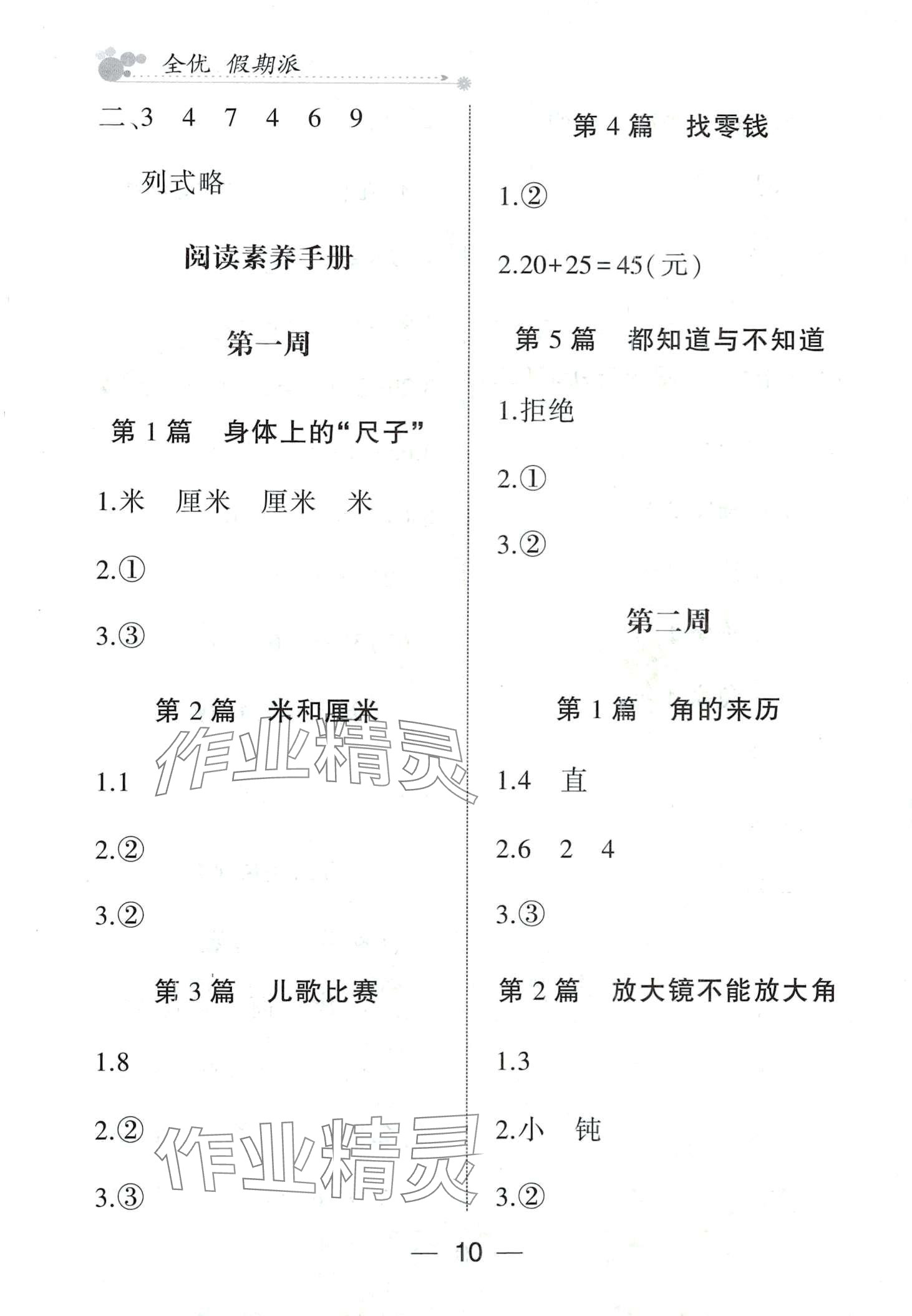 注:目前有些书本章节名称可能整理的还不是很完善,但都是按照顺序排列的,请同学们按照顺序仔细查找。练习册 2024年全优假期派二年级数学北师大版 答案主要是用来给同学们做完题方便对答案用的,请勿直接抄袭。