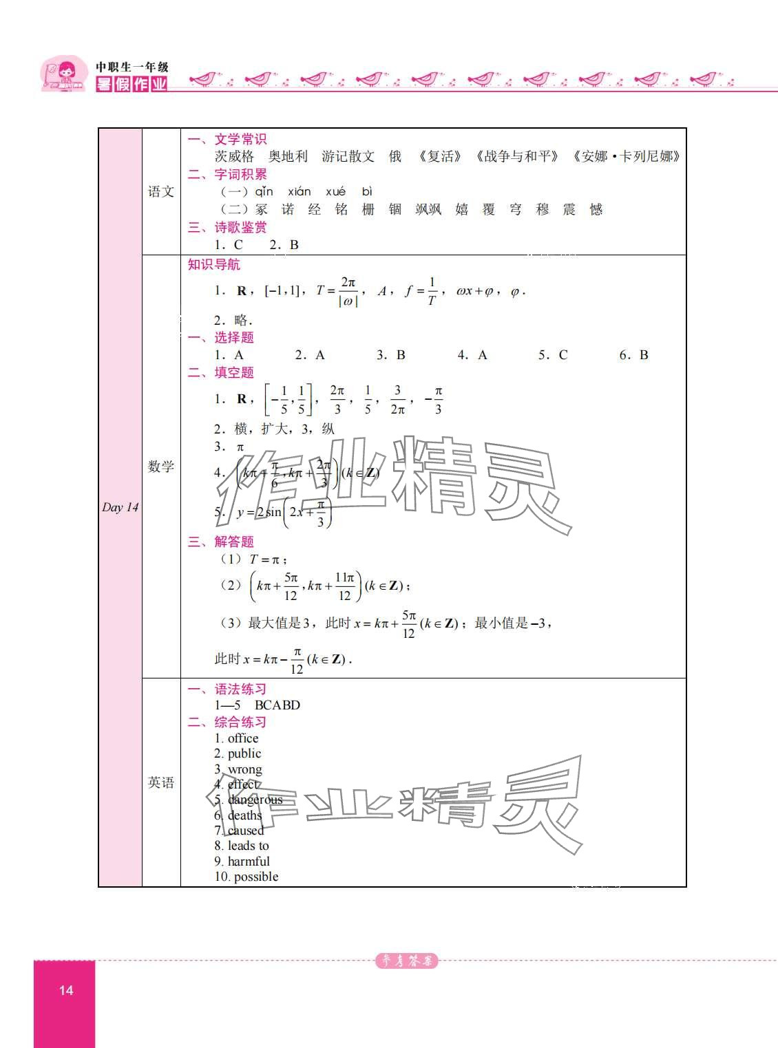 注:目前有些书本章节名称可能整理的还不是很完善,但都是按照顺序排列的,请同学们按照顺序仔细查找。练习册 2024年名师领航系列中职高一一年级综合 答案主要是用来给同学们做完题方便对答案用的,请勿直接抄袭。