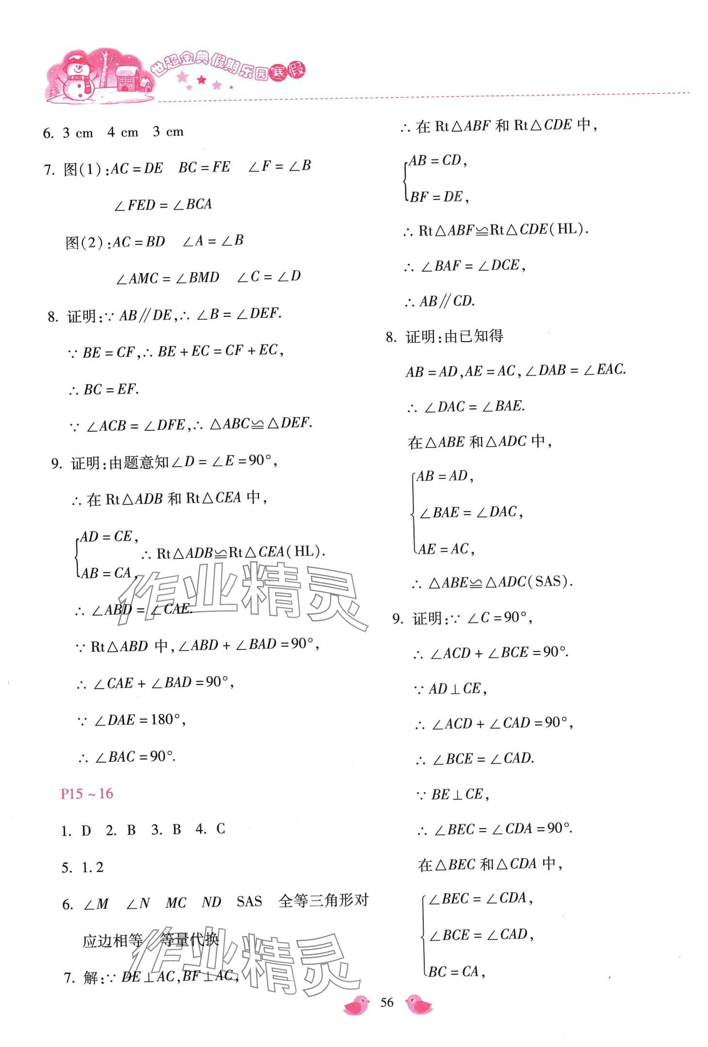 注:目前有些书本章节名称可能整理的还不是很完善,但都是按照顺序排列的,请同学们按照顺序仔细查找。练习册 2024年世超金典假期乐园寒假八年级数学 答案主要是用来给同学们做完题方便对答案用的,请勿直接抄袭。
