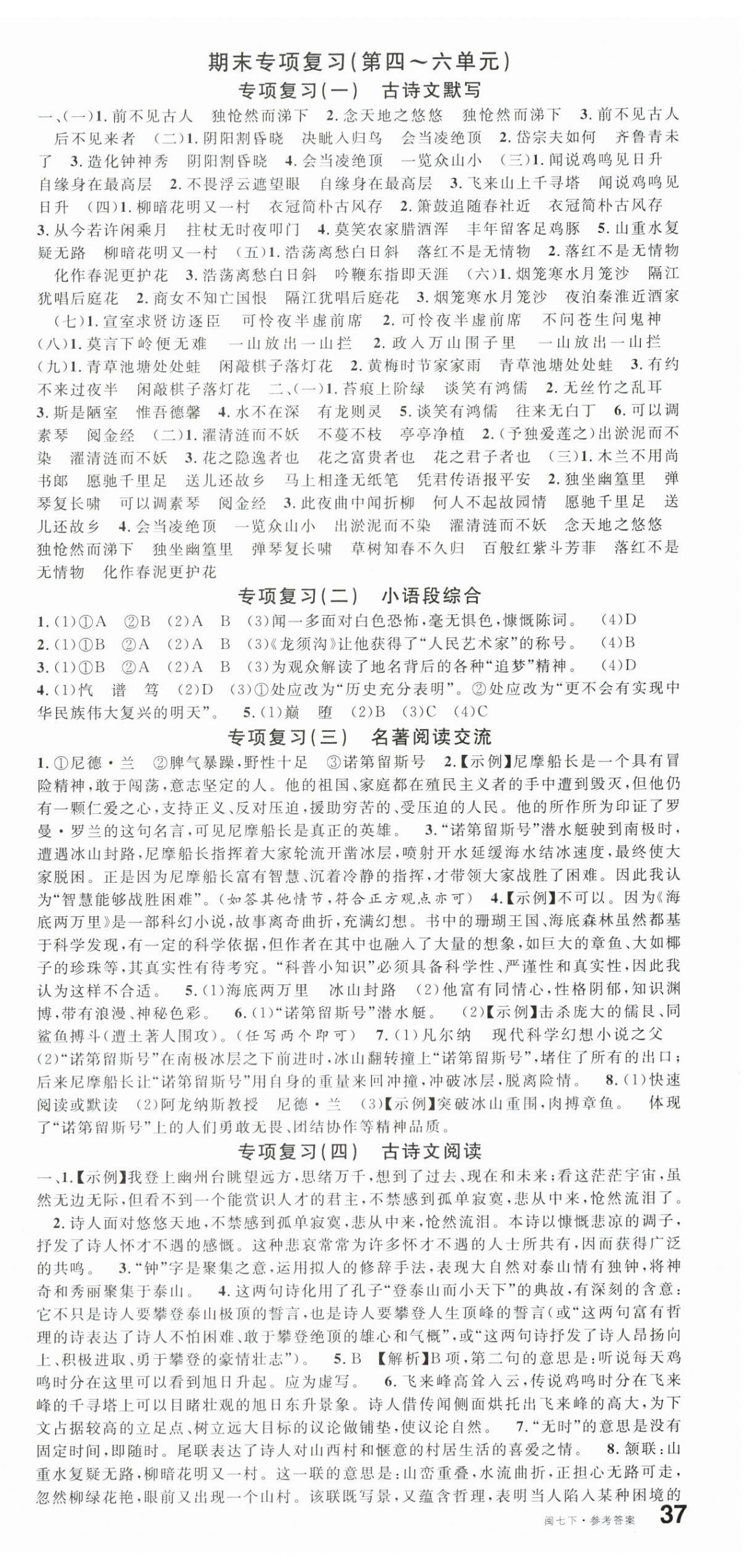 注:目前有些书本章节名称可能整理的还不是很完善,但都是按照顺序排列的,请同学们按照顺序仔细查找。练习册 2024年名校课堂七年级语文下册人教版福建专版 答案主要是用来给同学们做完题方便对答案用的,请勿直接抄袭。