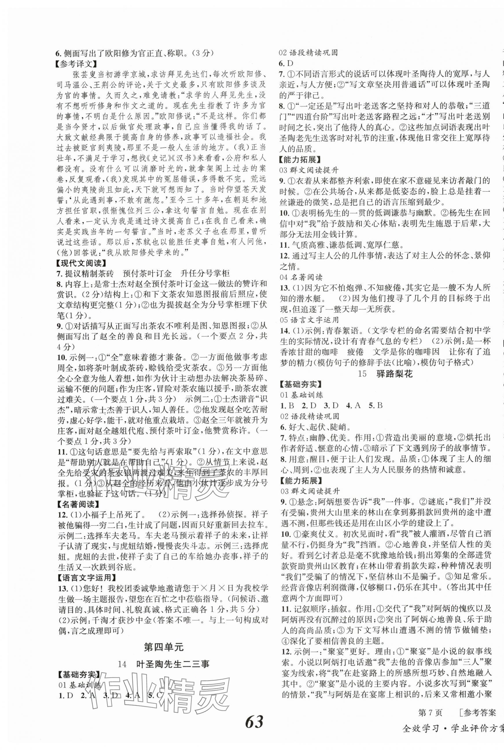 2024年全效学习学业评价方案七年级语文下册人教版学业评价方案