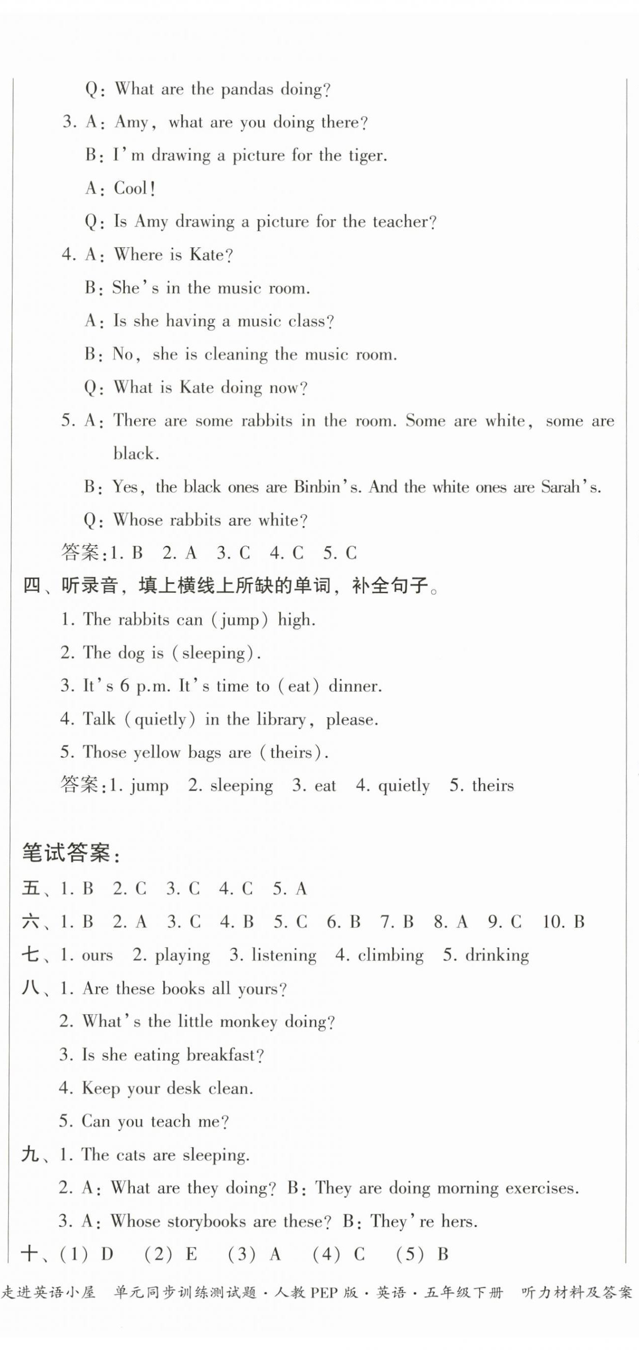 注:目前有些书本章节名称可能整理的还不是很完善,但都是按照顺序排列的,请同学们按照顺序仔细查找。练习册 2024年走进英语小屋五年级英语下册人教版 答案主要是用来给同学们做完题方便对答案用的,请勿直接抄袭。