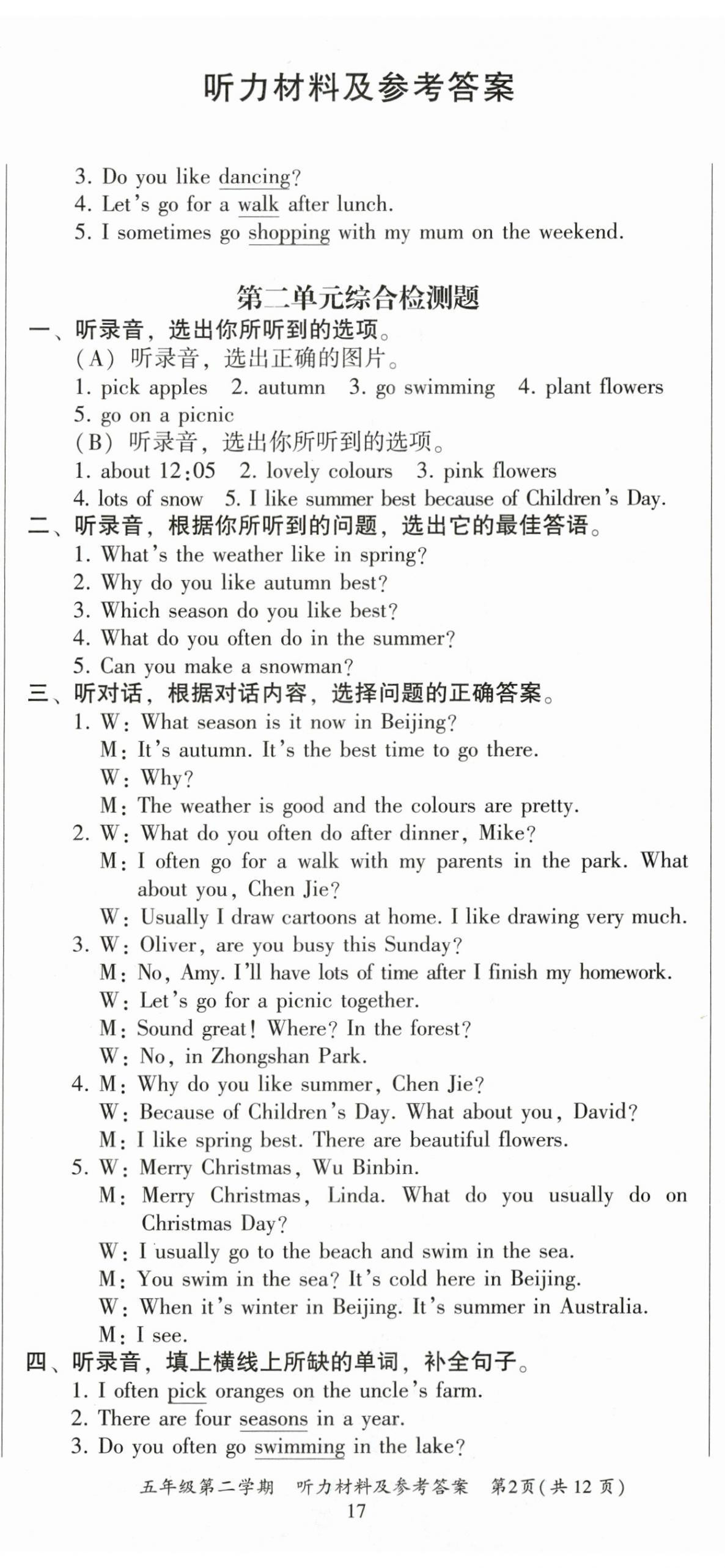 注:目前有些书本章节名称可能整理的还不是很完善,但都是按照顺序排列的,请同学们按照顺序仔细查找。练习册 2024年走进英语小屋五年级英语下册人教版 答案主要是用来给同学们做完题方便对答案用的,请勿直接抄袭。