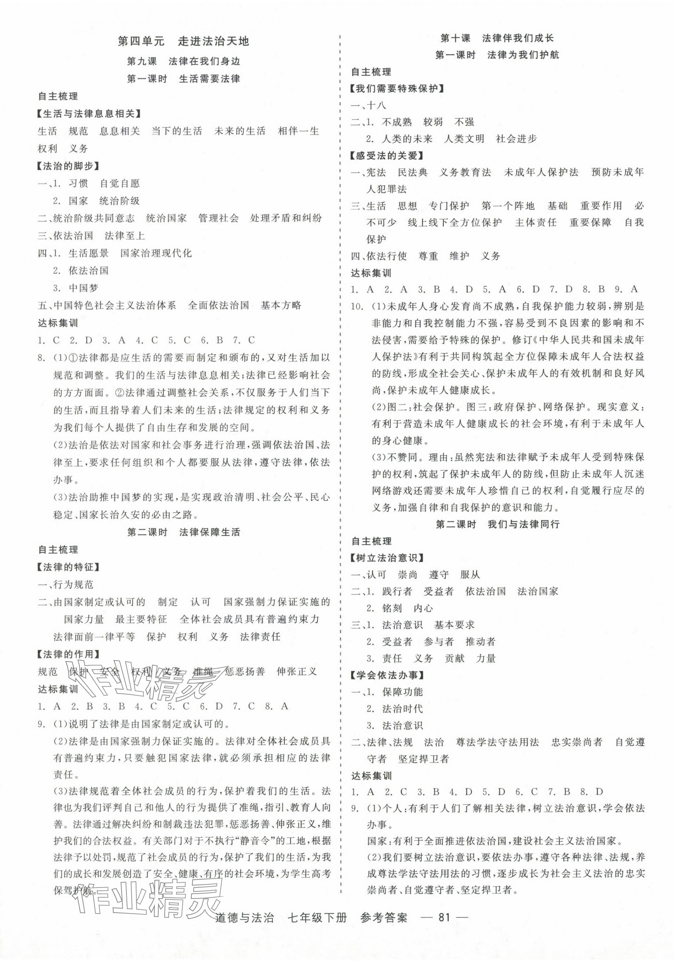注:目前有些书本章节名称可能整理的还不是很完善,但都是按照顺序排列的,请同学们按照顺序仔细查找。练习册 2024年精彩练习就练这一本七年级道德与法治下册人教版 答案主要是用来给同学们做完题方便对答案用的,请勿直接抄袭。