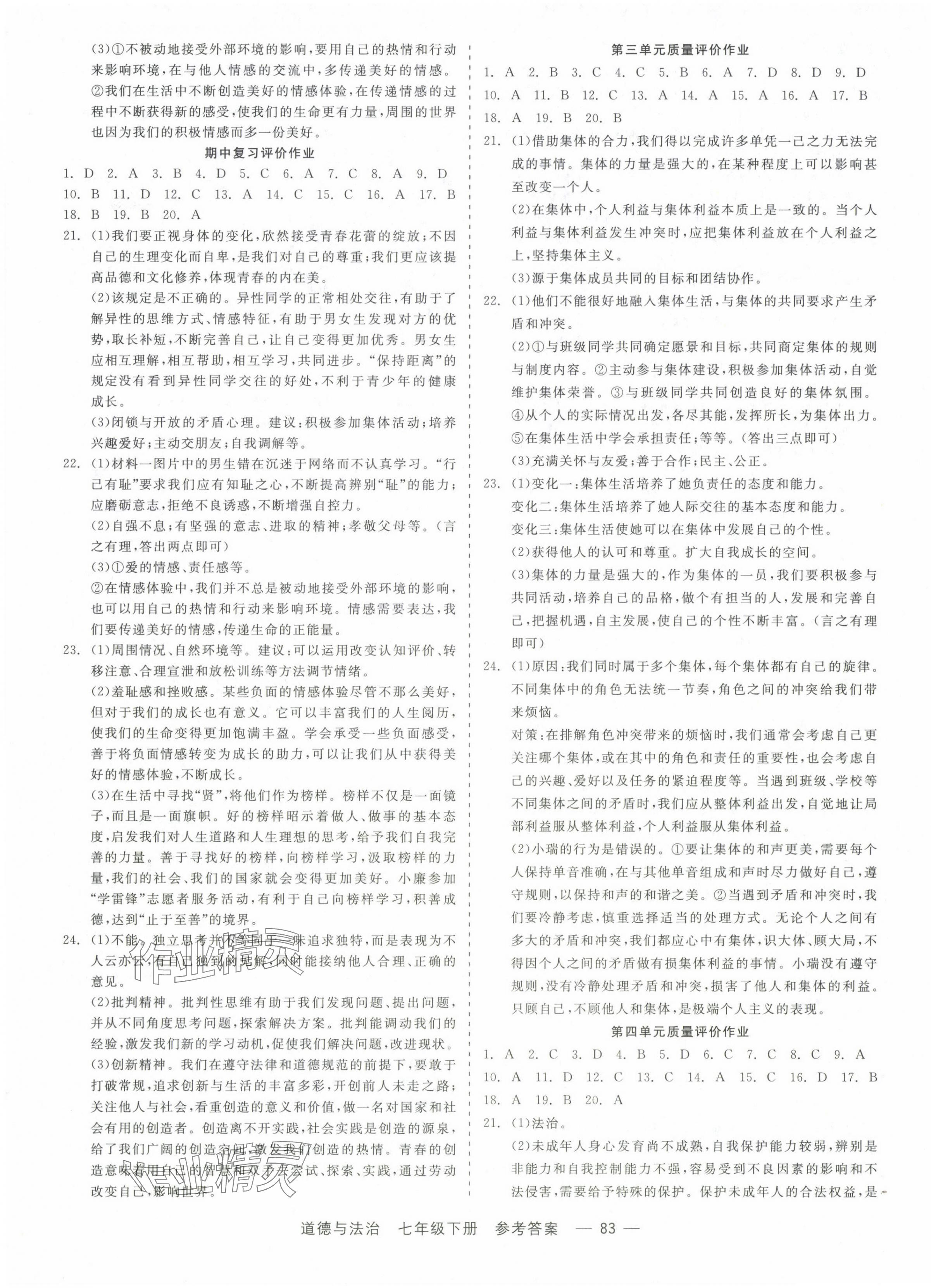 注:目前有些书本章节名称可能整理的还不是很完善,但都是按照顺序排列的,请同学们按照顺序仔细查找。练习册 2024年精彩练习就练这一本七年级道德与法治下册人教版 答案主要是用来给同学们做完题方便对答案用的,请勿直接抄袭。