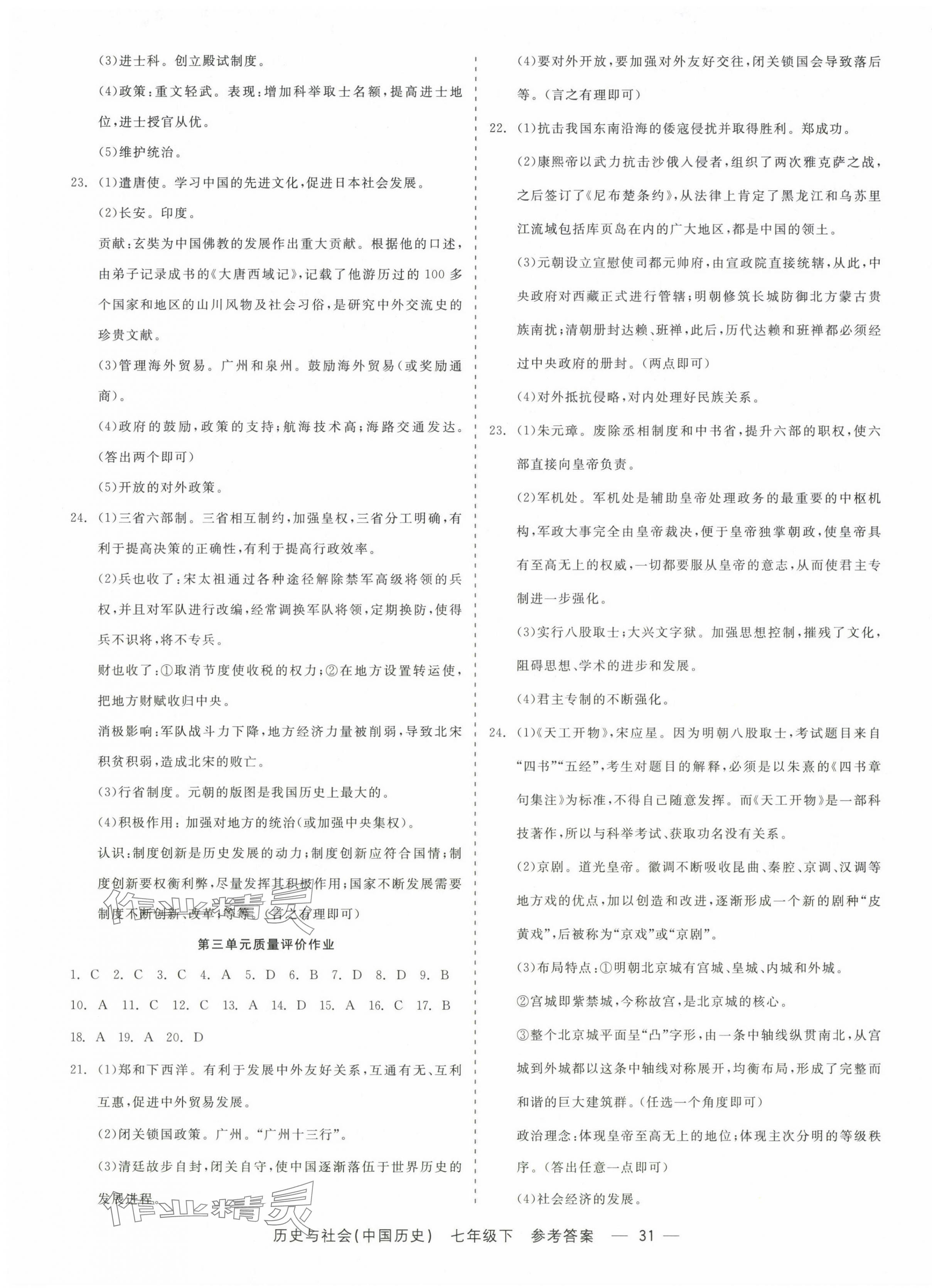 注:目前有些书本章节名称可能整理的还不是很完善,但都是按照顺序排列的,请同学们按照顺序仔细查找。练习册 2024年精彩练习就练这一本七年级历史与社会下册人教版 答案主要是用来给同学们做完题方便对答案用的,请勿直接抄袭。