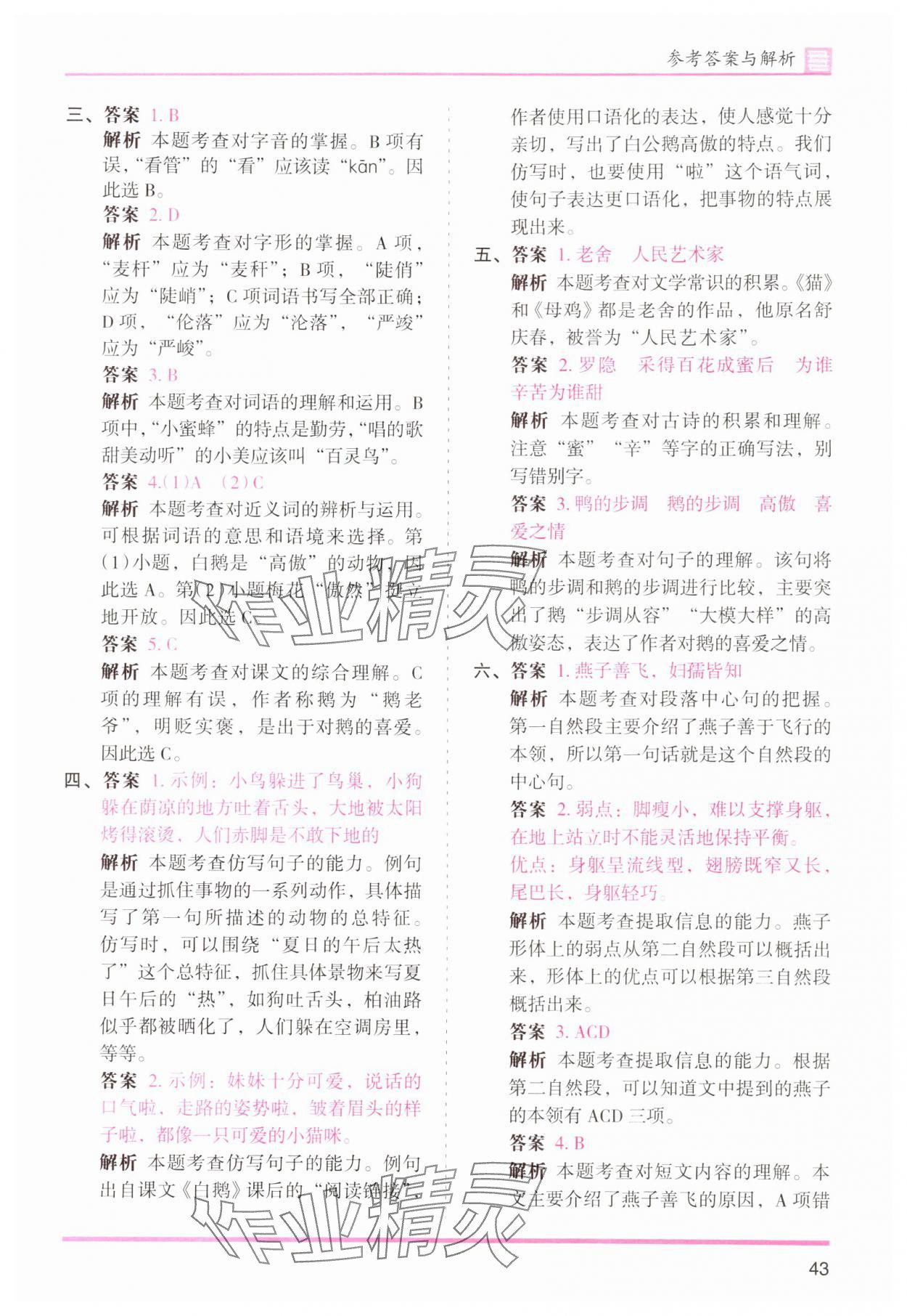 注:目前有些书本章节名称可能整理的还不是很完善,但都是按照顺序排列的,请同学们按照顺序仔细查找。练习册 2024年木头马分层课课练四年级语文下册人教版浙江专版 答案主要是用来给同学们做完题方便对答案用的,请勿直接抄袭。