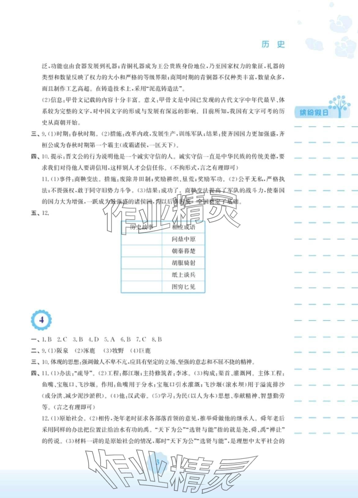 2024年寒假生活安徽教育出版社七年级历史人教版