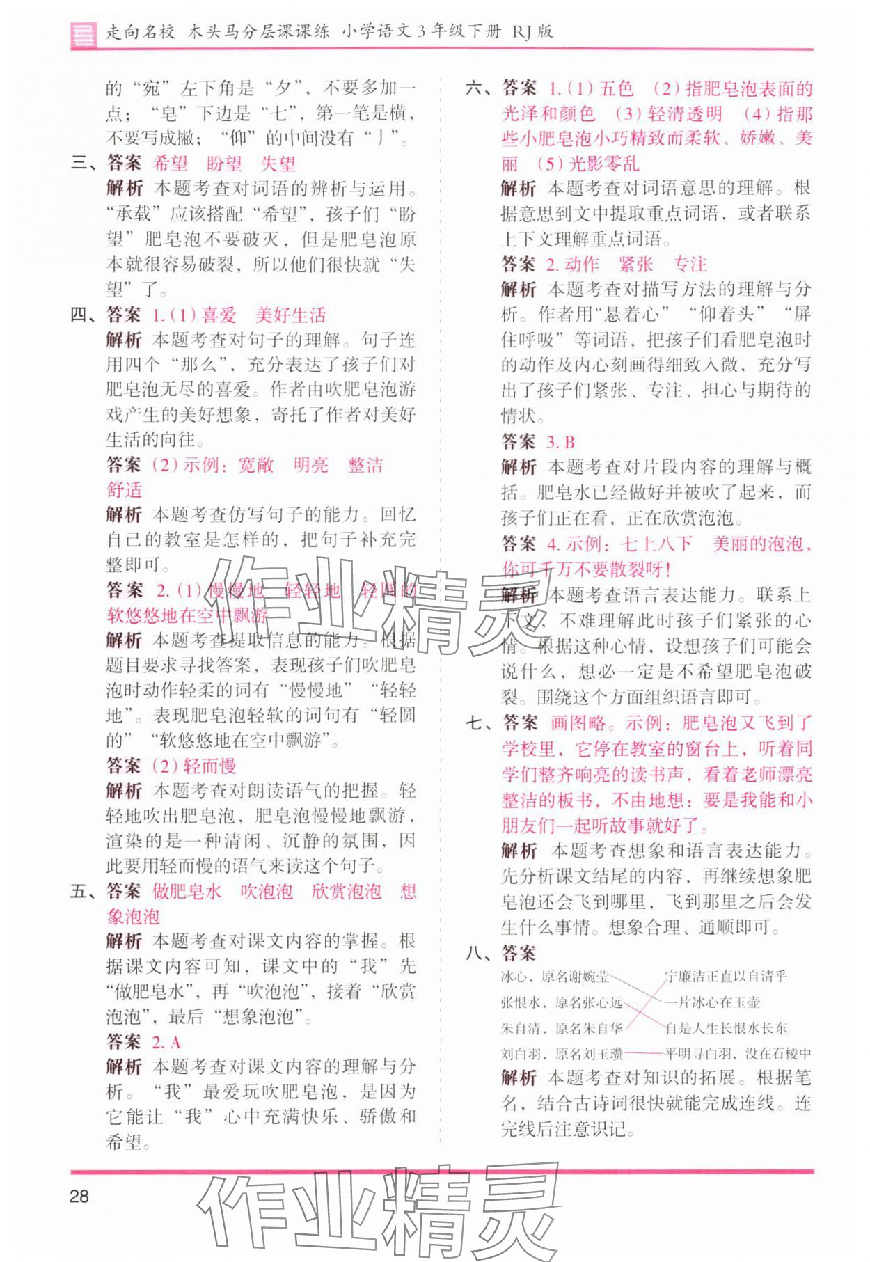 注:目前有些书本章节名称可能整理的还不是很完善,但都是按照顺序排列的,请同学们按照顺序仔细查找。练习册 2024年木头马分层课课练三年级语文下册人教版浙江专版 答案主要是用来给同学们做完题方便对答案用的,请勿直接抄袭。