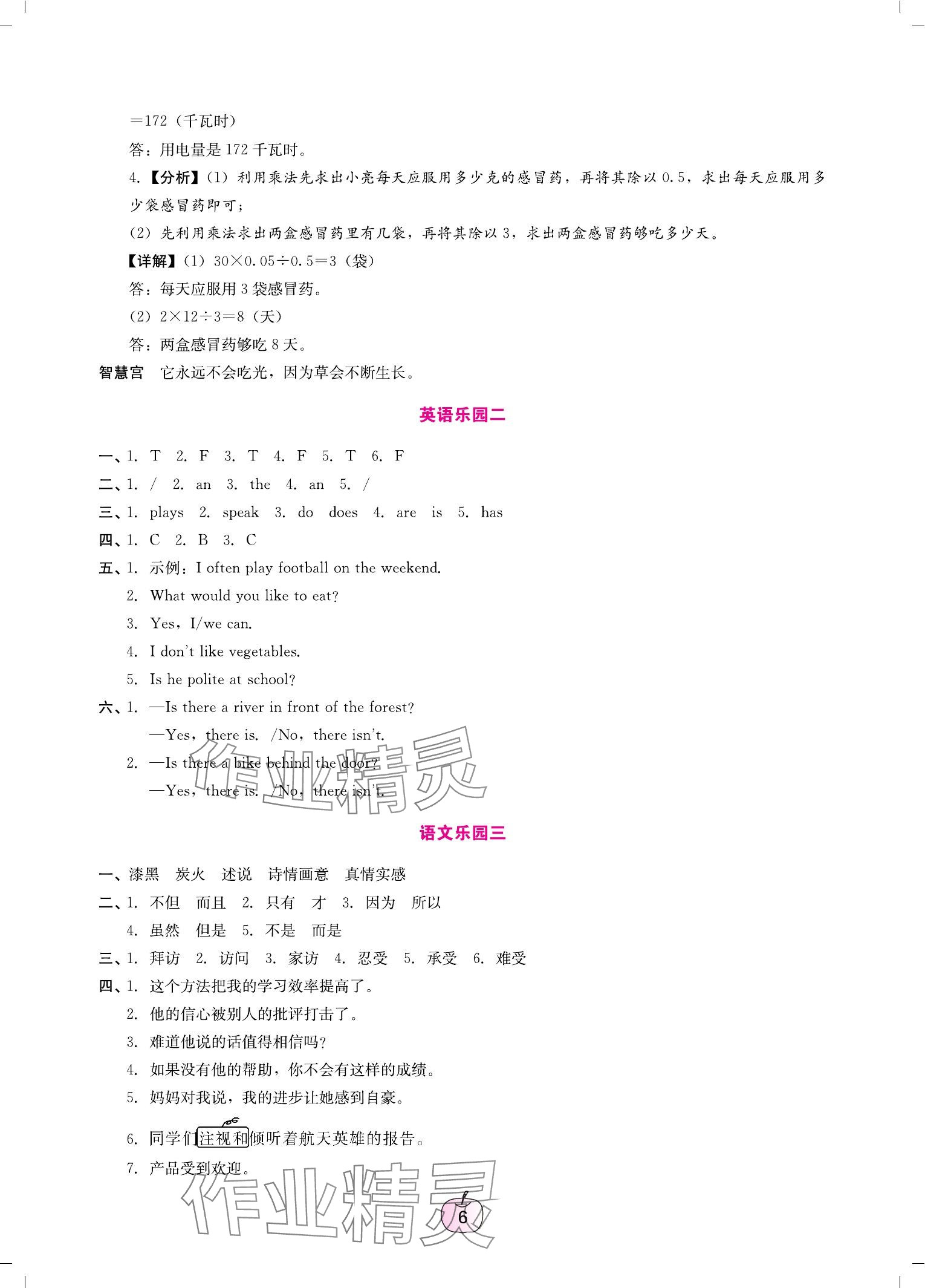 注:目前有些书本章节名称可能整理的还不是很完善,但都是按照顺序排列的,请同学们按照顺序仔细查找。练习册 2024年寒假乐园广东人民出版社五年级语文数学英语 答案主要是用来给同学们做完题方便对答案用的,请勿直接抄袭。