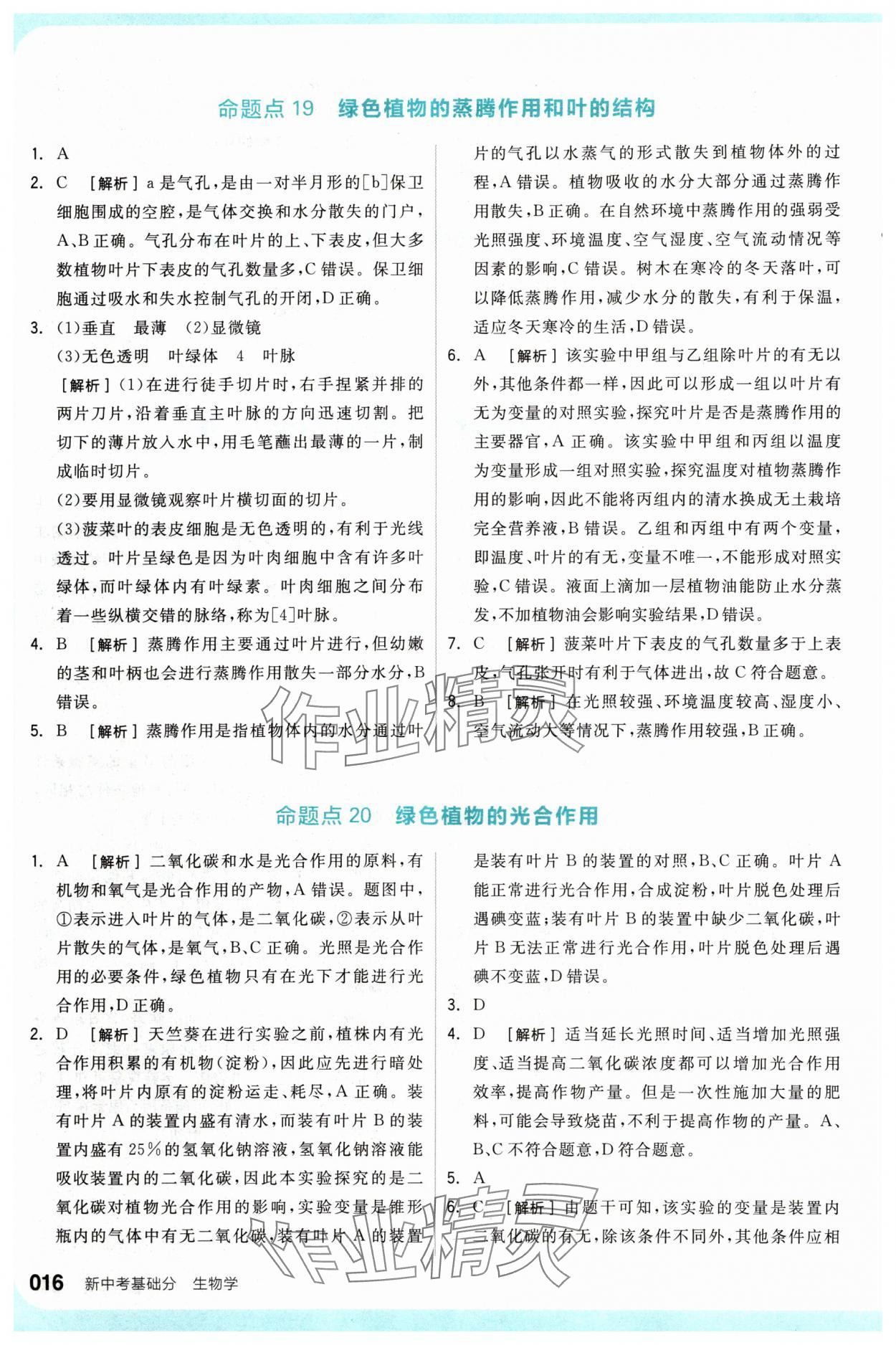 2024年全品新中考稳拿基础分生物