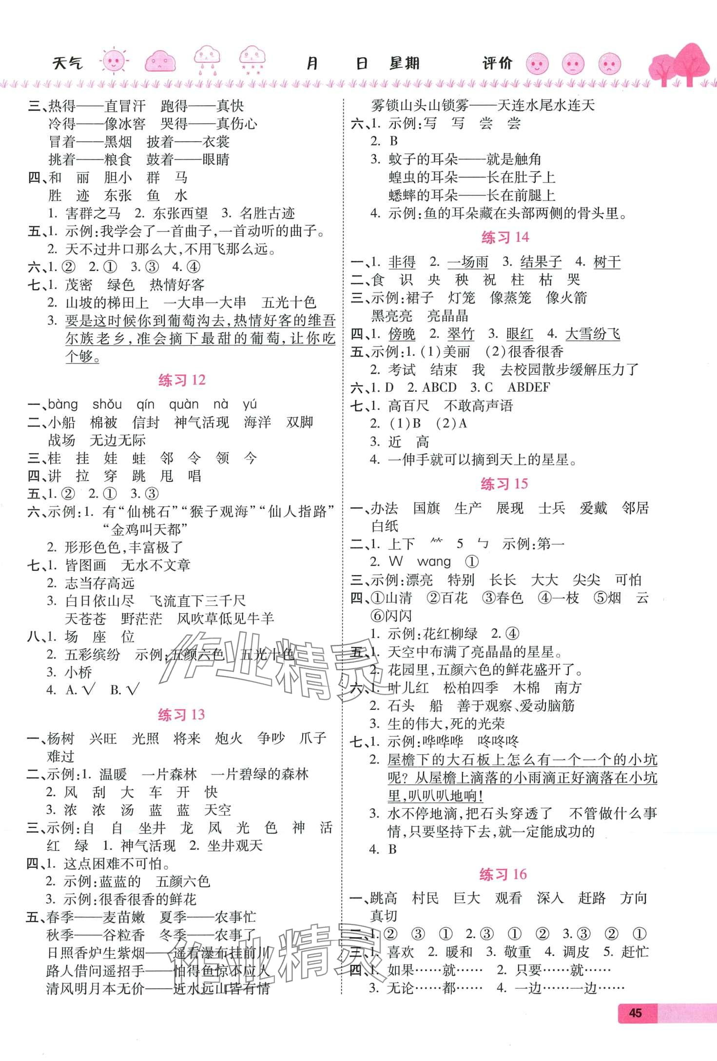 注:目前有些书本章节名称可能整理的还不是很完善,但都是按照顺序排列的,请同学们按照顺序仔细查找。练习册 2024年寒假作业西安出版社二年级语文人教版 答案主要是用来给同学们做完题方便对答案用的,请勿直接抄袭。