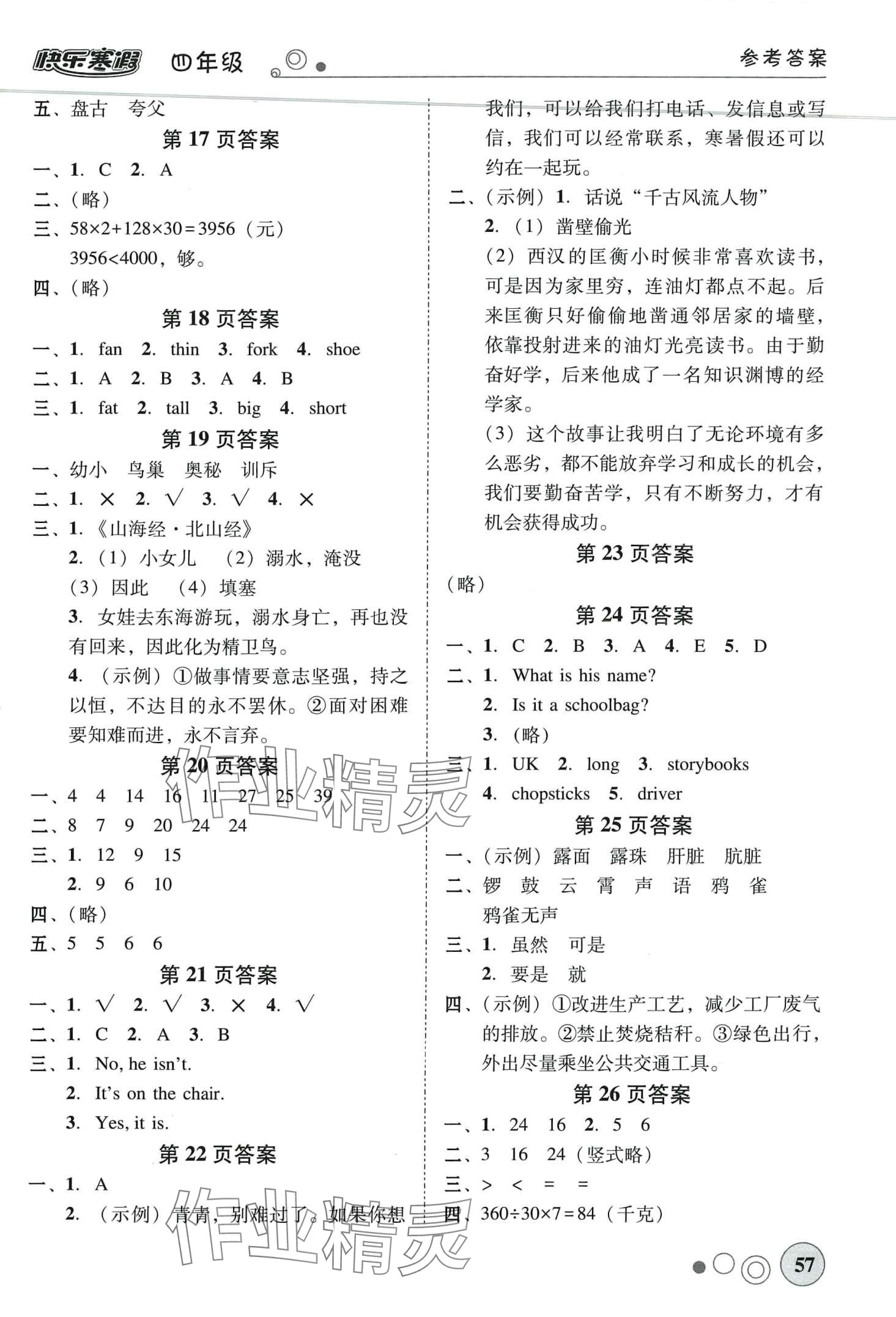 注:目前有些书本章节名称可能整理的还不是很完善,但都是按照顺序排列的,请同学们按照顺序仔细查找。练习册 2024年南粤学典快乐寒假四年级 答案主要是用来给同学们做完题方便对答案用的,请勿直接抄袭。