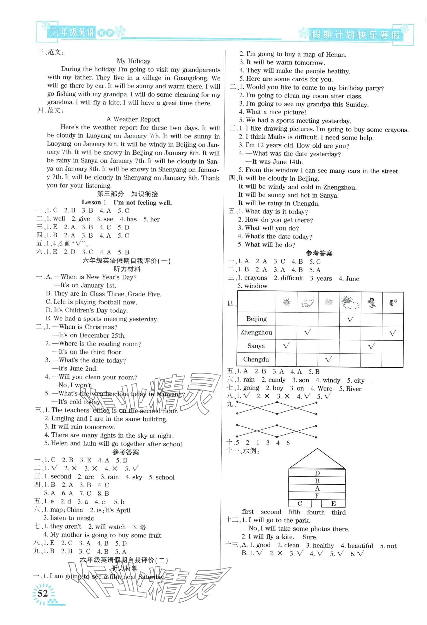 注:目前有些书本章节名称可能整理的还不是很完善,但都是按照顺序排列的,请同学们按照顺序仔细查找。练习册 2024年快乐寒假假期计划六年级英语科普版 答案主要是用来给同学们做完题方便对答案用的,请勿直接抄袭。