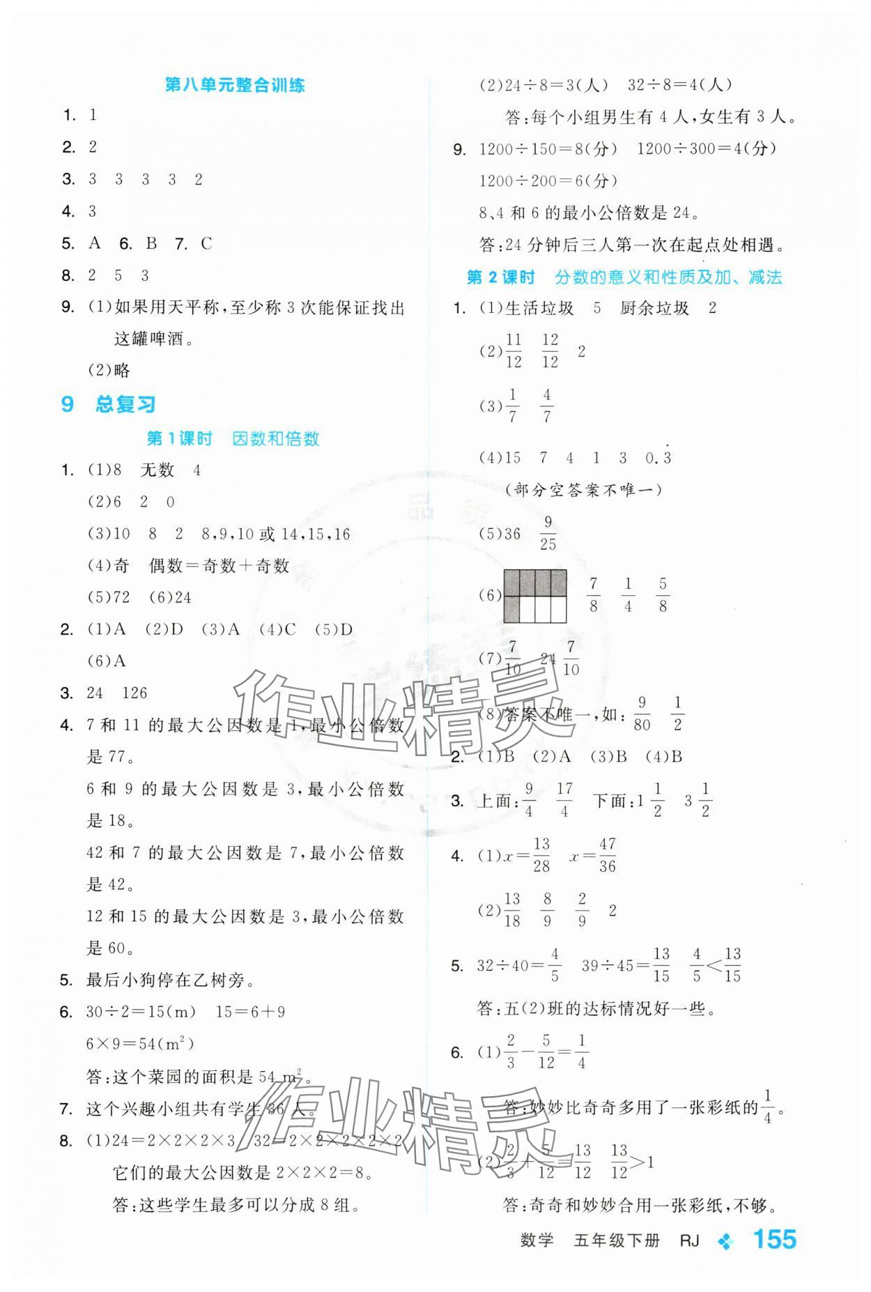 注:目前有些书本章节名称可能整理的还不是很完善,但都是按照顺序排列的,请同学们按照顺序仔细查找。练习册 2024年全品学练考五年级数学下册人教版 答案主要是用来给同学们做完题方便对答案用的,请勿直接抄袭。