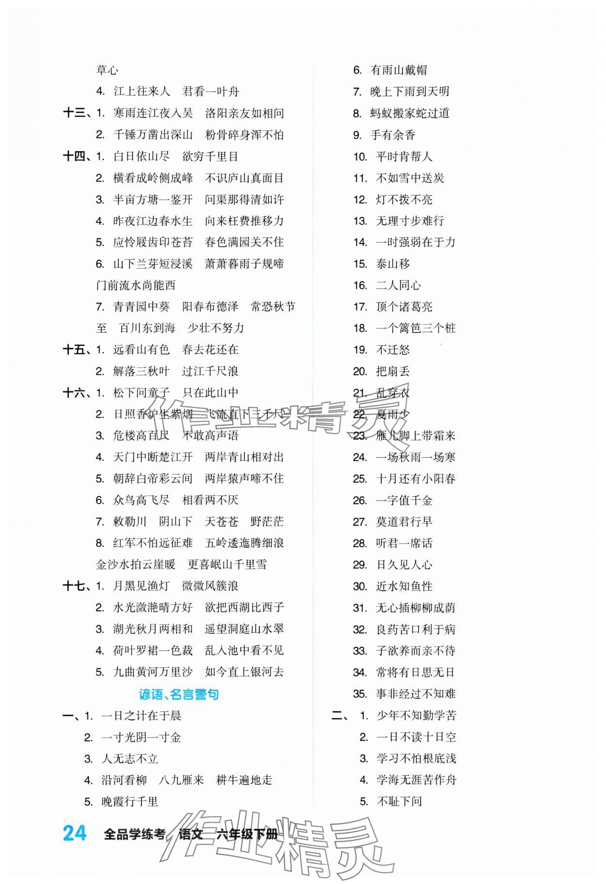 《2024年全品学练考六年级语文下册人教版浙江专版》