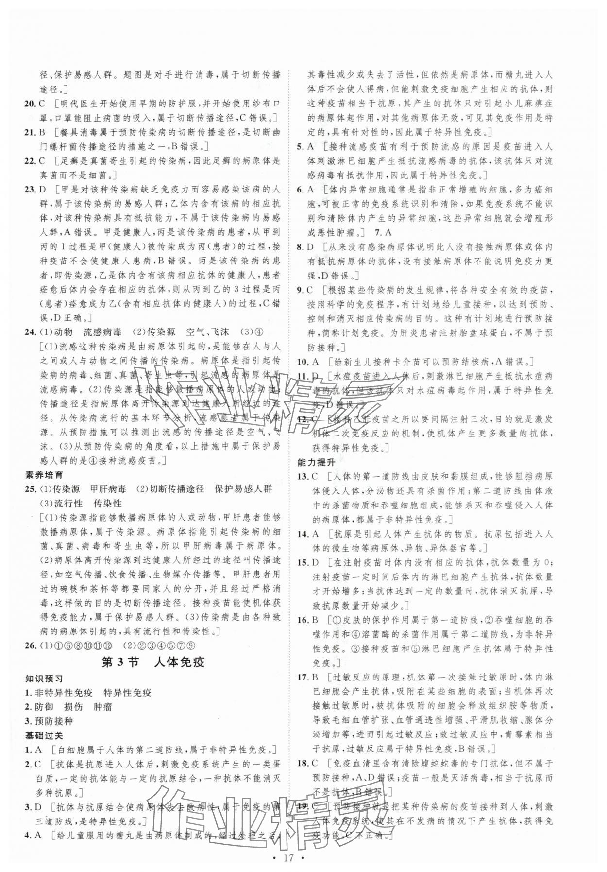注:目前有些书本章节名称可能整理的还不是很完善,但都是按照顺序排列的,请同学们按照顺序仔细查找。练习册 2024年思路教练同步课时作业七年级生物下册北师大版 答案主要是用来给同学们做完题方便对答案用的,请勿直接抄袭。