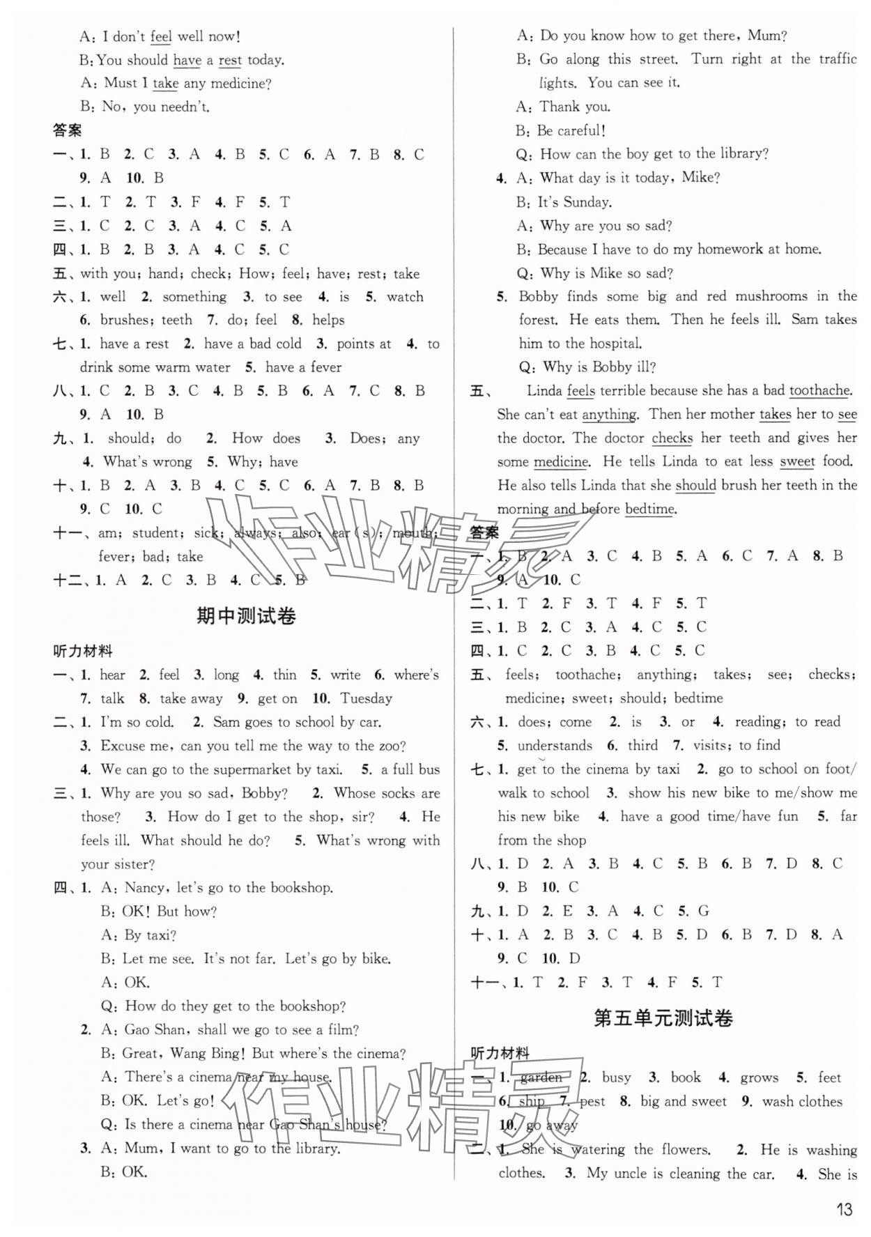 注:目前有些书本章节名称可能整理的还不是很完善,但都是按照顺序排列的,请同学们按照顺序仔细查找。练习册 2024年金3练五年级英语下册译林版 答案主要是用来给同学们做完题方便对答案用的,请勿直接抄袭。
