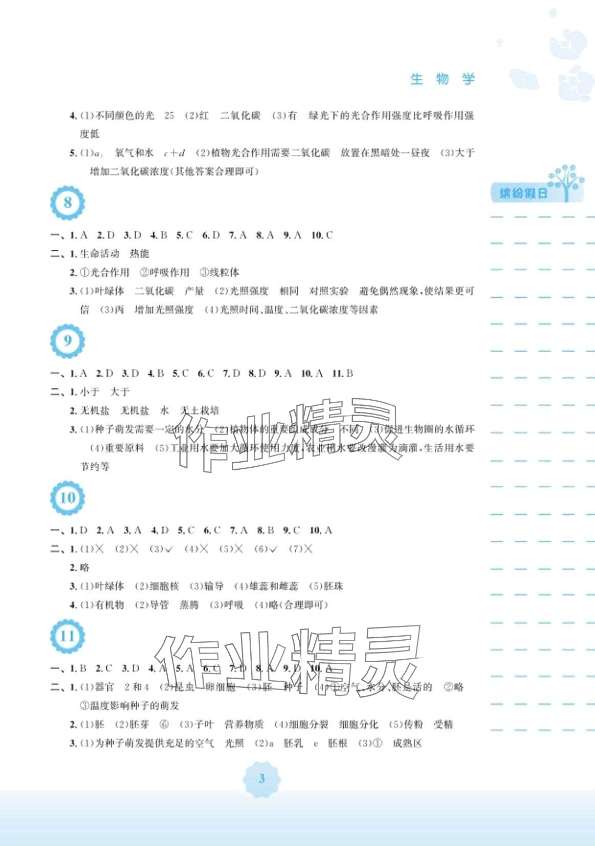 注:目前有些书本章节名称可能整理的还不是很完善,但都是按照顺序排列的,请同学们按照顺序仔细查找。练习册 2024年寒假生活安徽教育出版社七年级生物北师大版 答案主要是用来给同学们做完题方便对答案用的,请勿直接抄袭。