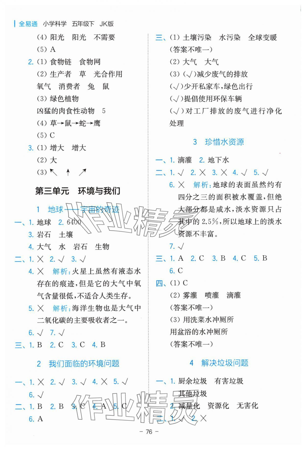 注:目前有些书本章节名称可能整理的还不是很完善,但都是按照顺序排列的,请同学们按照顺序仔细查找。练习册 2024年全易通五年级科学下册教科版 答案主要是用来给同学们做完题方便对答案用的,请勿直接抄袭。
