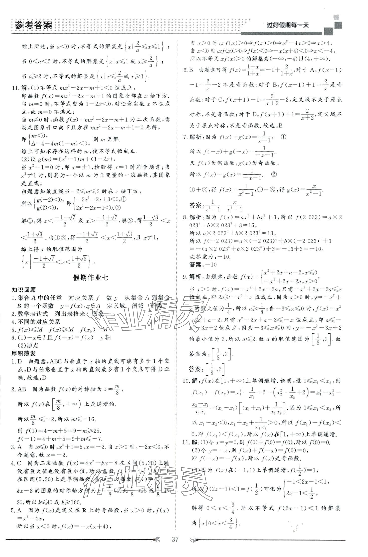 注:目前有些书本章节名称可能整理的还不是很完善,但都是按照顺序排列的,请同学们按照顺序仔细查找。练习册 2024年过好假期每一天南方出版社高一数学 答案主要是用来给同学们做完题方便对答案用的,请勿直接抄袭。
