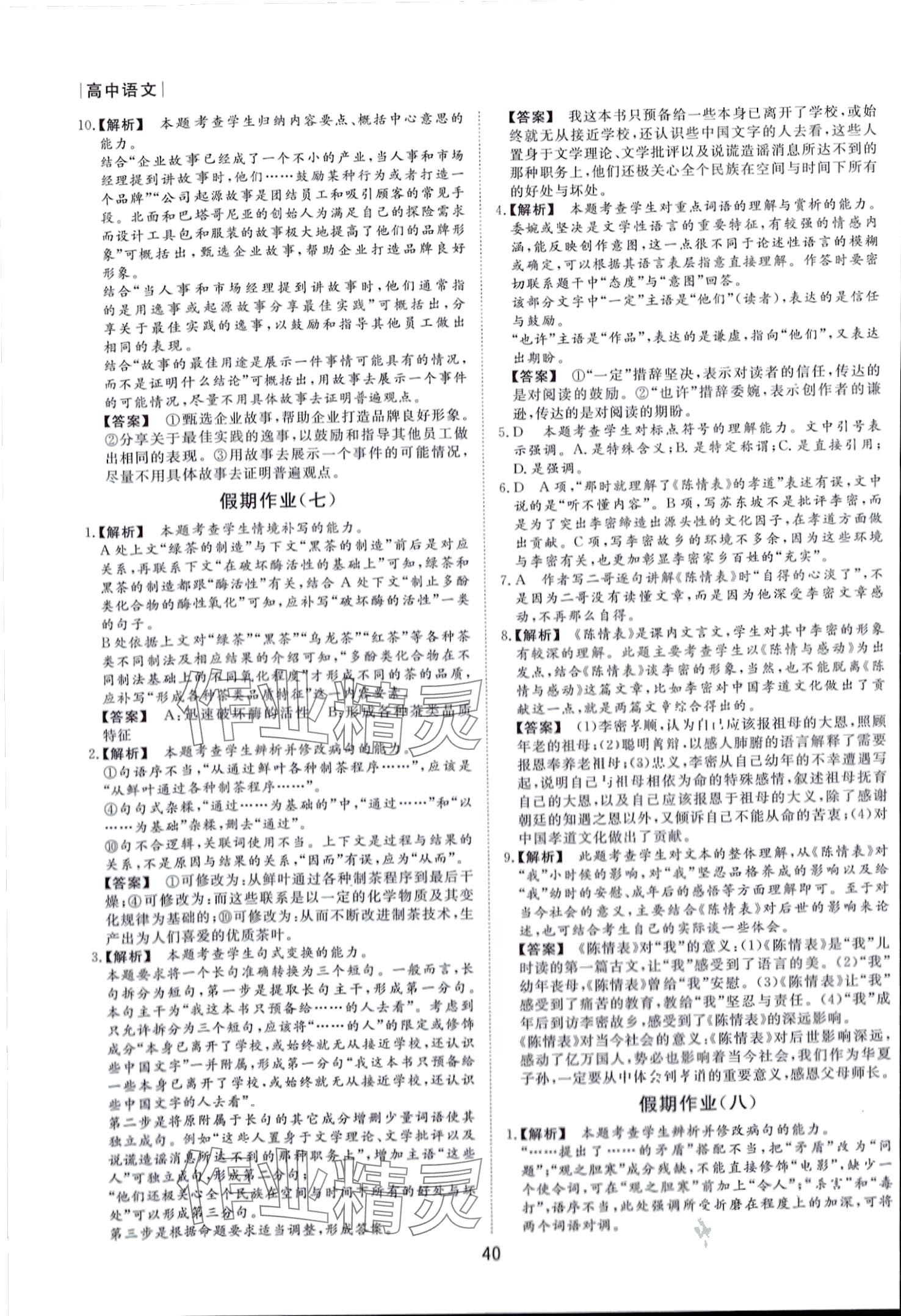 注:目前有些书本章节名称可能整理的还不是很完善,但都是按照顺序排列的,请同学们按照顺序仔细查找。练习册 2024年过好假期每一天南方出版社高二语文 答案主要是用来给同学们做完题方便对答案用的,请勿直接抄袭。
