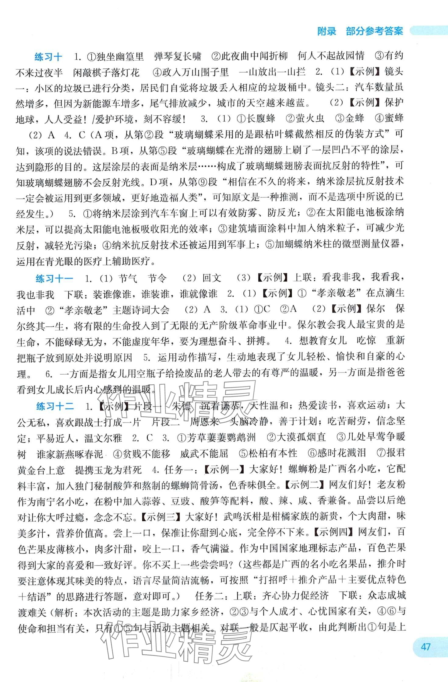注:目前有些书本章节名称可能整理的还不是很完善,但都是按照顺序排列的,请同学们按照顺序仔细查找。练习册 2024年新课程寒假作业广西师范大学出版社八年级语文 答案主要是用来给同学们做完题方便对答案用的,请勿直接抄袭。