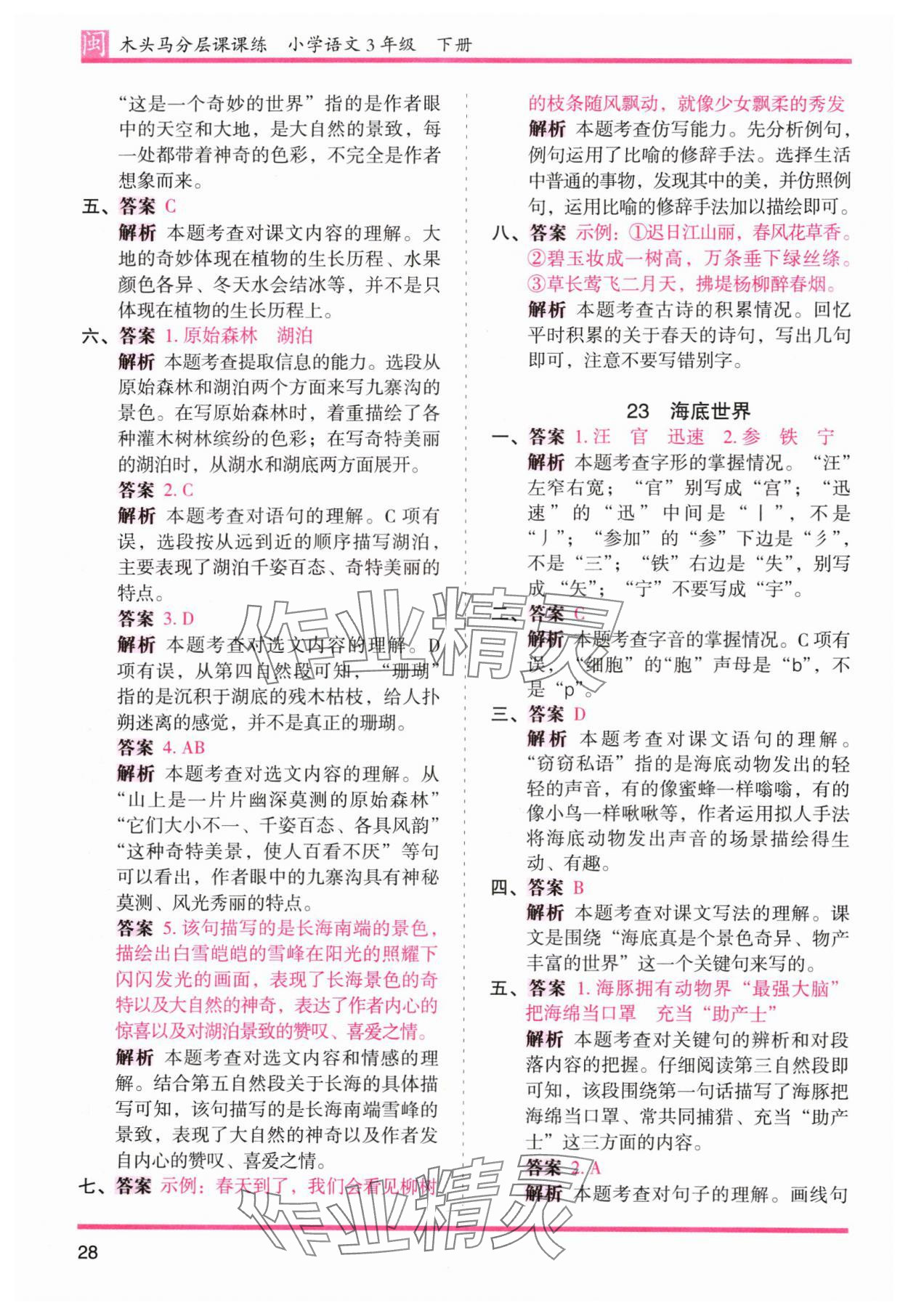 注:目前有些书本章节名称可能整理的还不是很完善,但都是按照顺序排列的,请同学们按照顺序仔细查找。练习册 2024年木头马分层课课练三年级语文下册人教版福建专版 答案主要是用来给同学们做完题方便对答案用的,请勿直接抄袭。