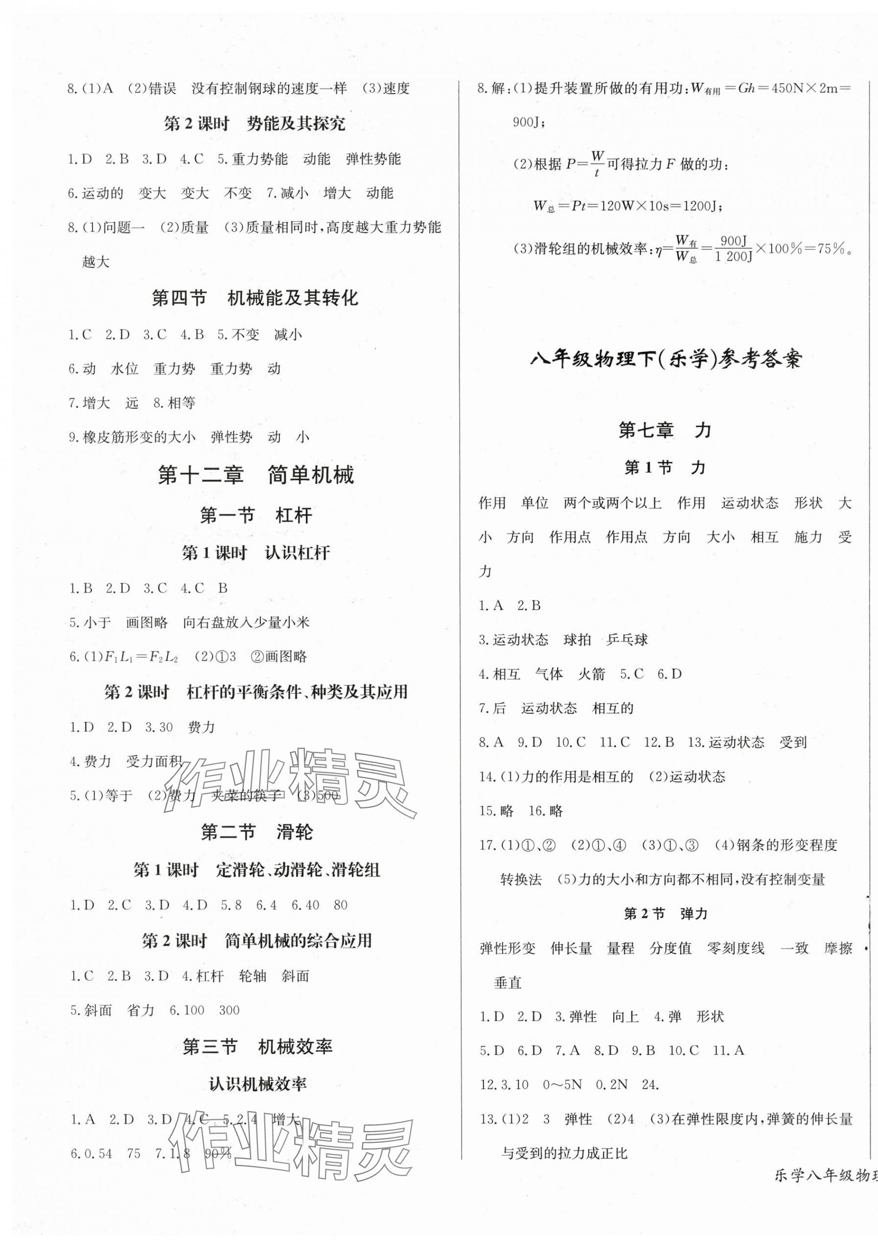 注:目前有些书本章节名称可能整理的还不是很完善,但都是按照顺序排列的,请同学们按照顺序仔细查找。练习册 2024年乐学课堂课时学讲练八年级物理下册人教版 答案主要是用来给同学们做完题方便对答案用的,请勿直接抄袭。
