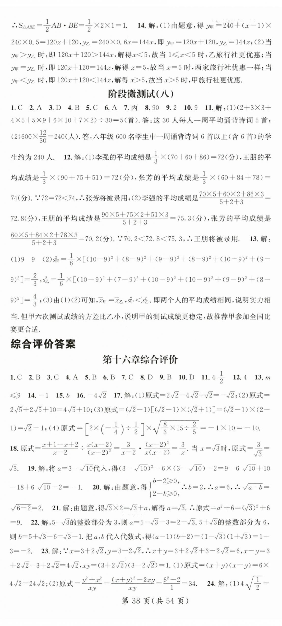 注:目前有些书本章节名称可能整理的还不是很完善,但都是按照顺序排列的,请同学们按照顺序仔细查找。练习册 2024年名师测控八年级数学下册人教版湖北专版 答案主要是用来给同学们做完题方便对答案用的,请勿直接抄袭。