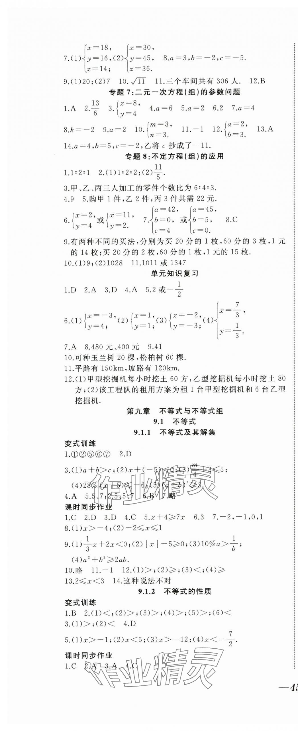 注:目前有些书本章节名称可能整理的还不是很完善,但都是按照顺序排列的,请同学们按照顺序仔细查找。练习册 2024年名校一号梦启课堂七年级数学下册人教版 答案主要是用来给同学们做完题方便对答案用的,请勿直接抄袭。