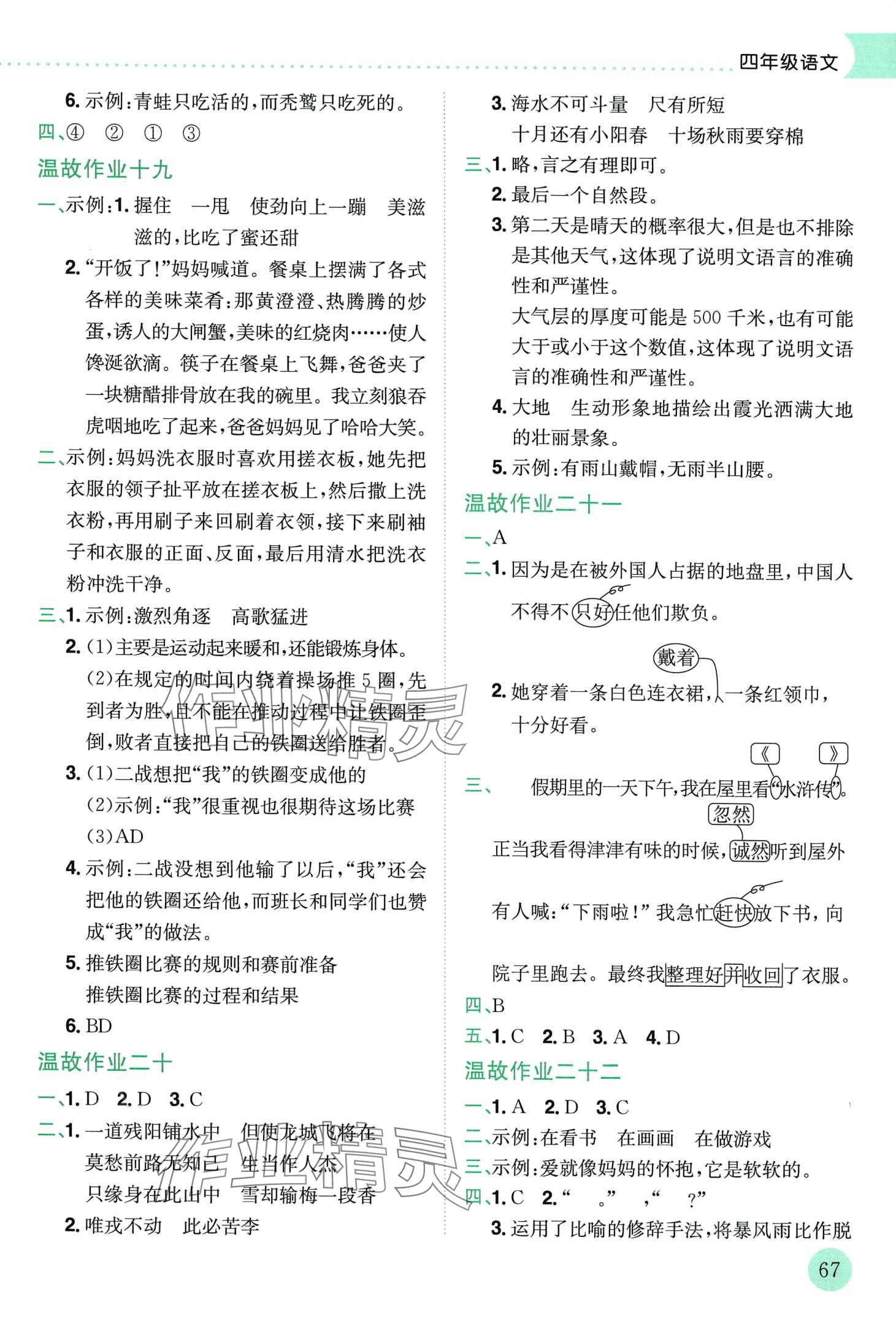 注:目前有些书本章节名称可能整理的还不是很完善,但都是按照顺序排列的,请同学们按照顺序仔细查找。练习册 2024年黄冈小状元寒假作业龙门书局四年级语文 答案主要是用来给同学们做完题方便对答案用的,请勿直接抄袭。