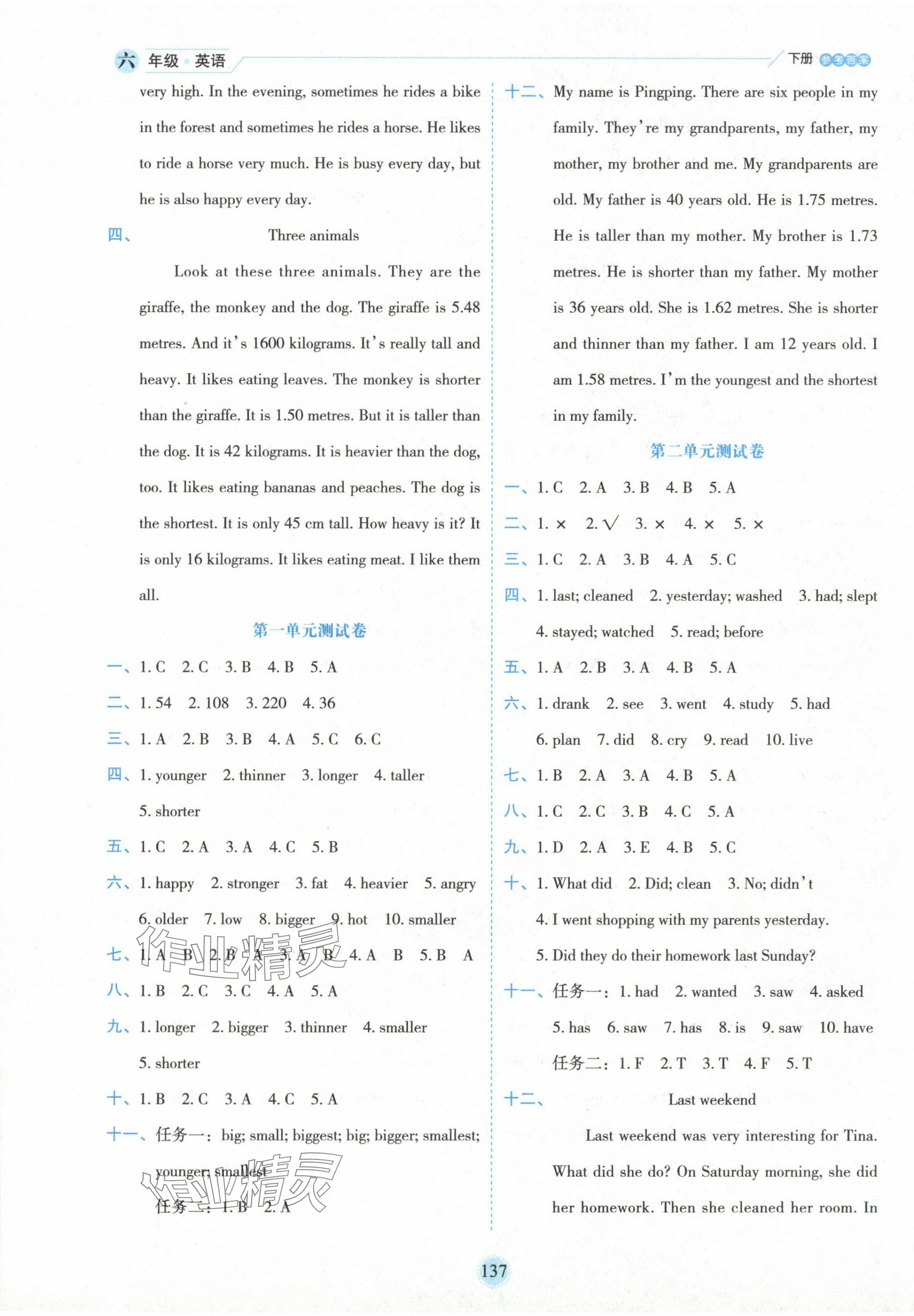 注:目前有些书本章节名称可能整理的还不是很完善,但都是按照顺序排列的,请同学们按照顺序仔细查找。练习册 2024年优秀生作业本六年级英语下册人教版 答案主要是用来给同学们做完题方便对答案用的,请勿直接抄袭。