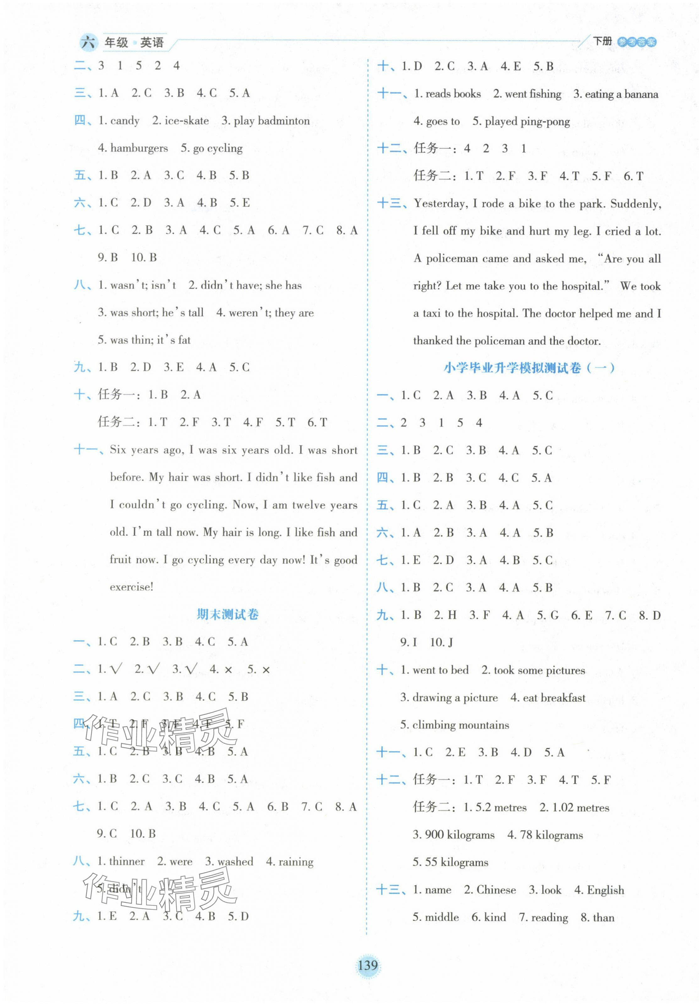 注:目前有些书本章节名称可能整理的还不是很完善,但都是按照顺序排列的,请同学们按照顺序仔细查找。练习册 2024年优秀生作业本六年级英语下册人教版 答案主要是用来给同学们做完题方便对答案用的,请勿直接抄袭。