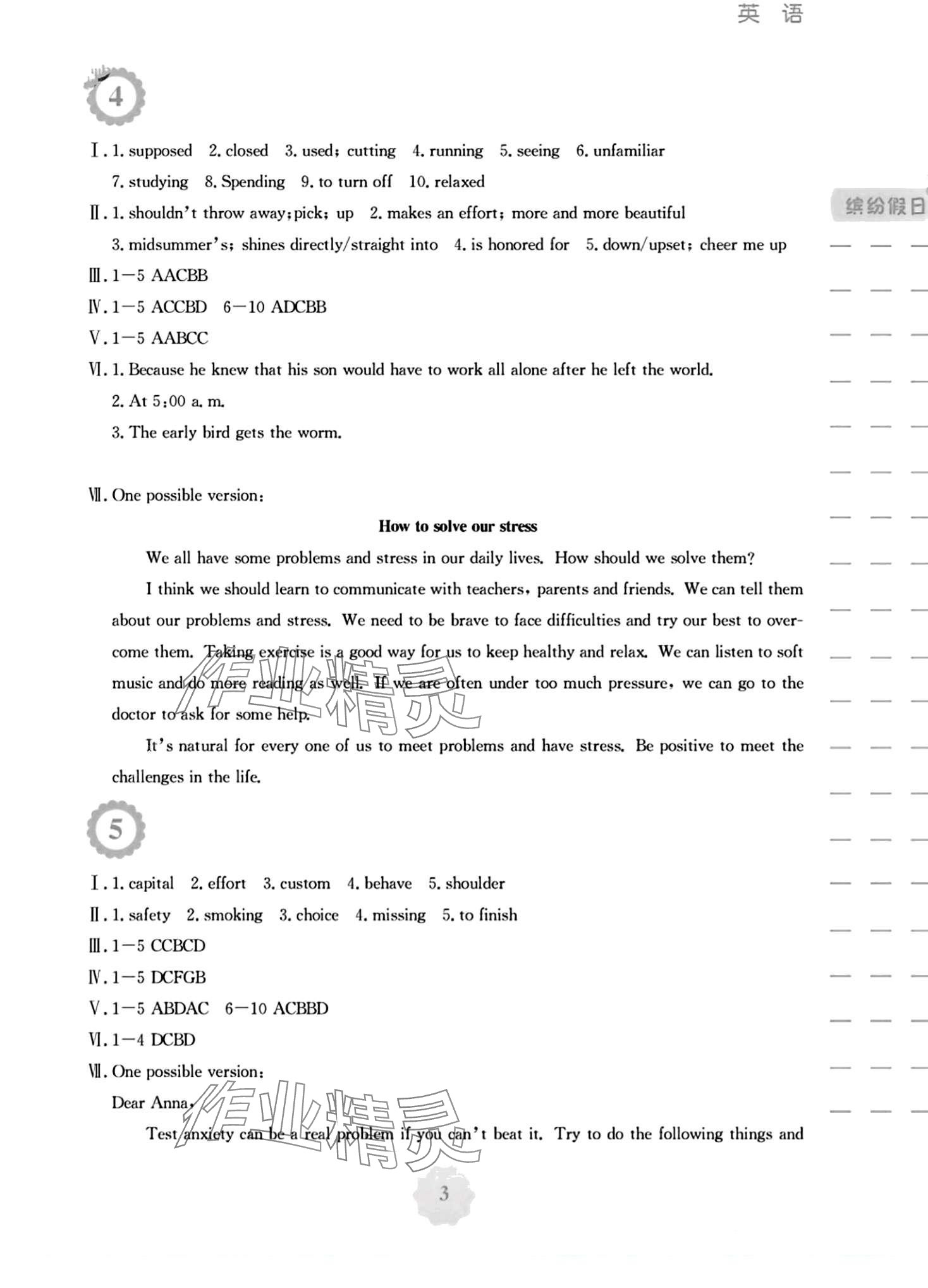 注:目前有些书本章节名称可能整理的还不是很完善,但都是按照顺序排列的,请同学们按照顺序仔细查找。练习册 2024年寒假生活安徽教育出版社九年级英语人教版 答案主要是用来给同学们做完题方便对答案用的,请勿直接抄袭。