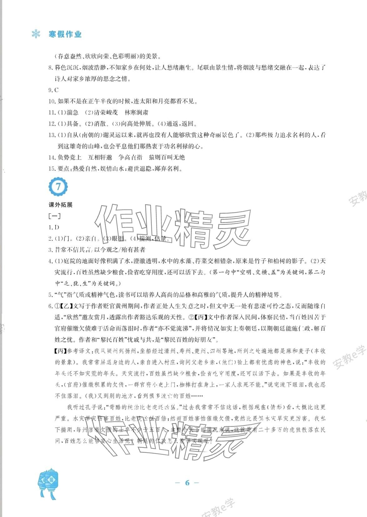 2024年寒假作业安徽教育出版社八年级语文人教版