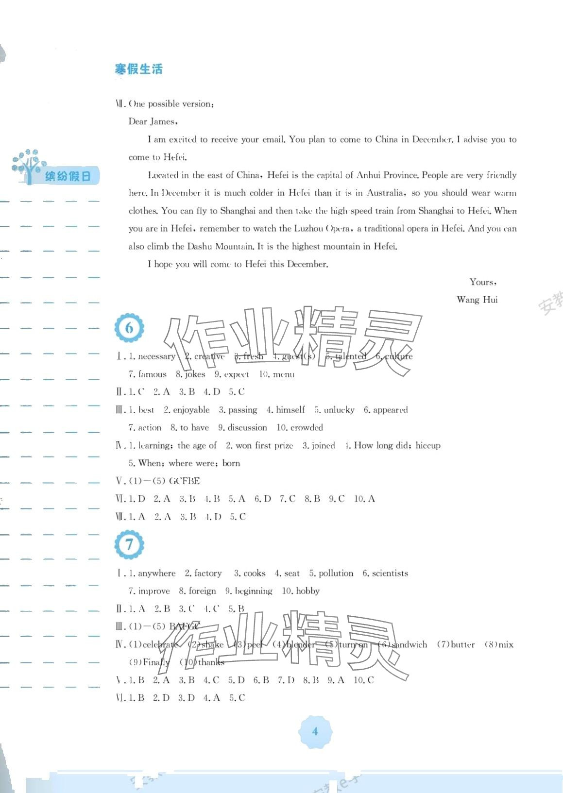 注:目前有些书本章节名称可能整理的还不是很完善,但都是按照顺序排列的,请同学们按照顺序仔细查找。练习册 2024年寒假生活安徽教育出版社八年级英语人教版 答案主要是用来给同学们做完题方便对答案用的,请勿直接抄袭。