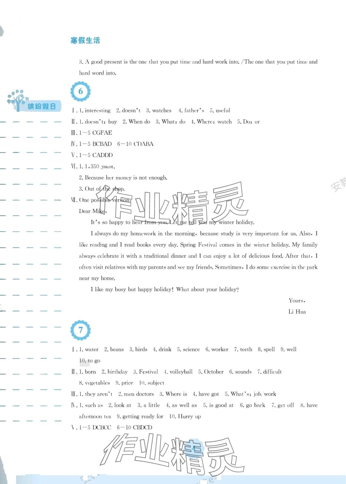 注:目前有些书本章节名称可能整理的还不是很完善,但都是按照顺序排列的,请同学们按照顺序仔细查找。练习册 2024年寒假生活安徽教育出版社七年级英语人教版 答案主要是用来给同学们做完题方便对答案用的,请勿直接抄袭。
