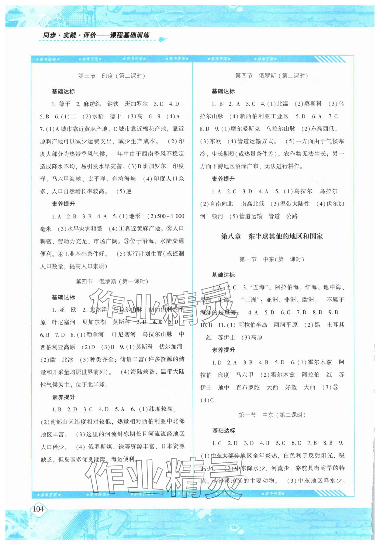 注:目前有些书本章节名称可能整理的还不是很完善,但都是按照顺序排列的,请同学们按照顺序仔细查找。练习册 2024年同步实践评价课程基础训练七年级地理下册人教版 答案主要是用来给同学们做完题方便对答案用的,请勿直接抄袭。