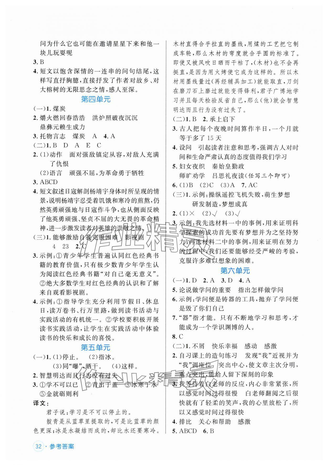 注:目前有些书本章节名称可能整理的还不是很完善,但都是按照顺序排列的,请同学们按照顺序仔细查找。练习册 2024年黄冈名卷六年级语文下册人教版 答案主要是用来给同学们做完题方便对答案用的,请勿直接抄袭。