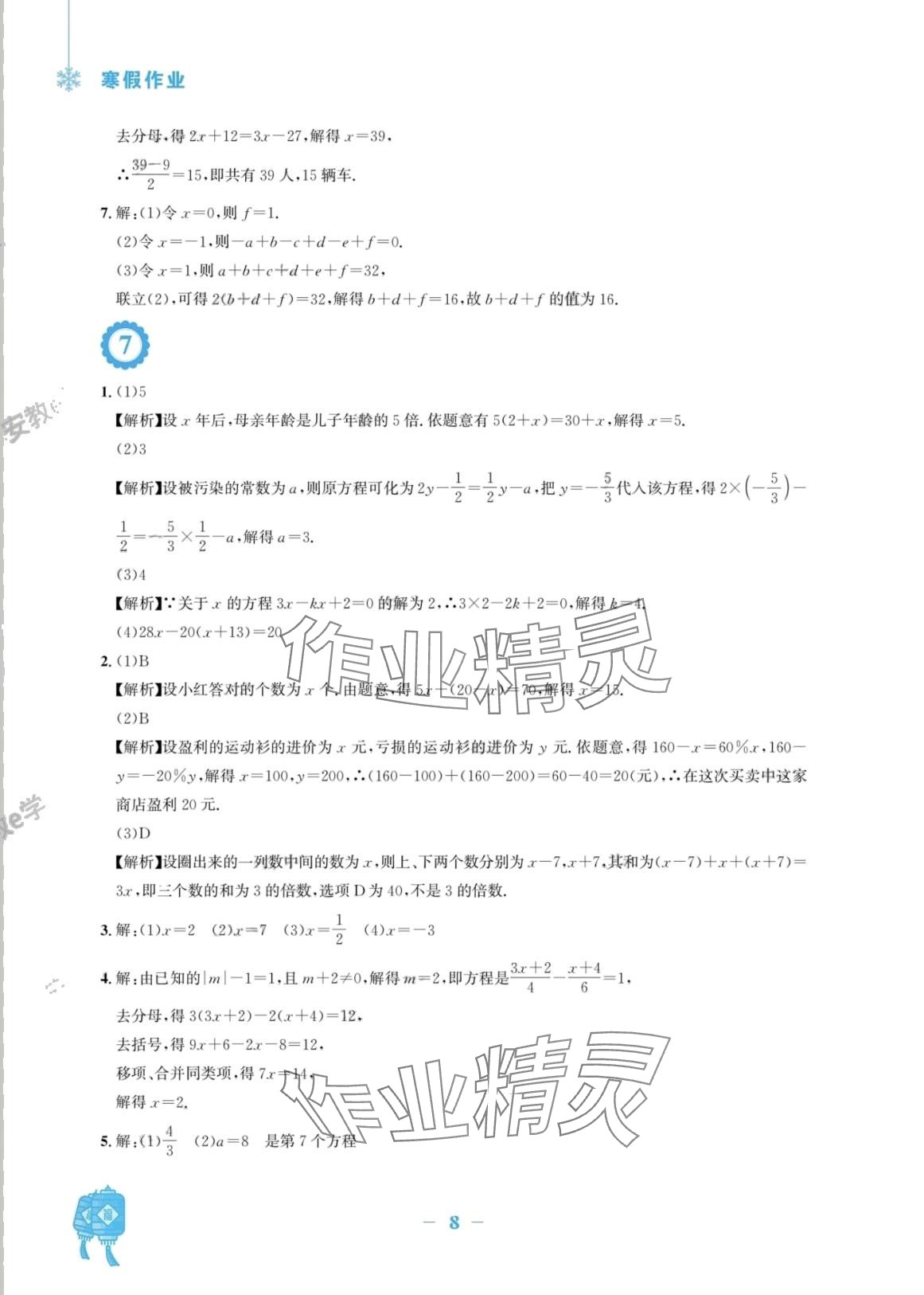 注:目前有些书本章节名称可能整理的还不是很完善,但都是按照顺序排列的,请同学们按照顺序仔细查找。练习册 2024年寒假作业安徽教育出版社七年级数学人教版 答案主要是用来给同学们做完题方便对答案用的,请勿直接抄袭。