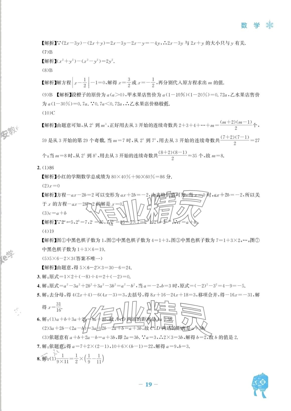 2024年寒假作业安徽教育出版社七年级数学人教版