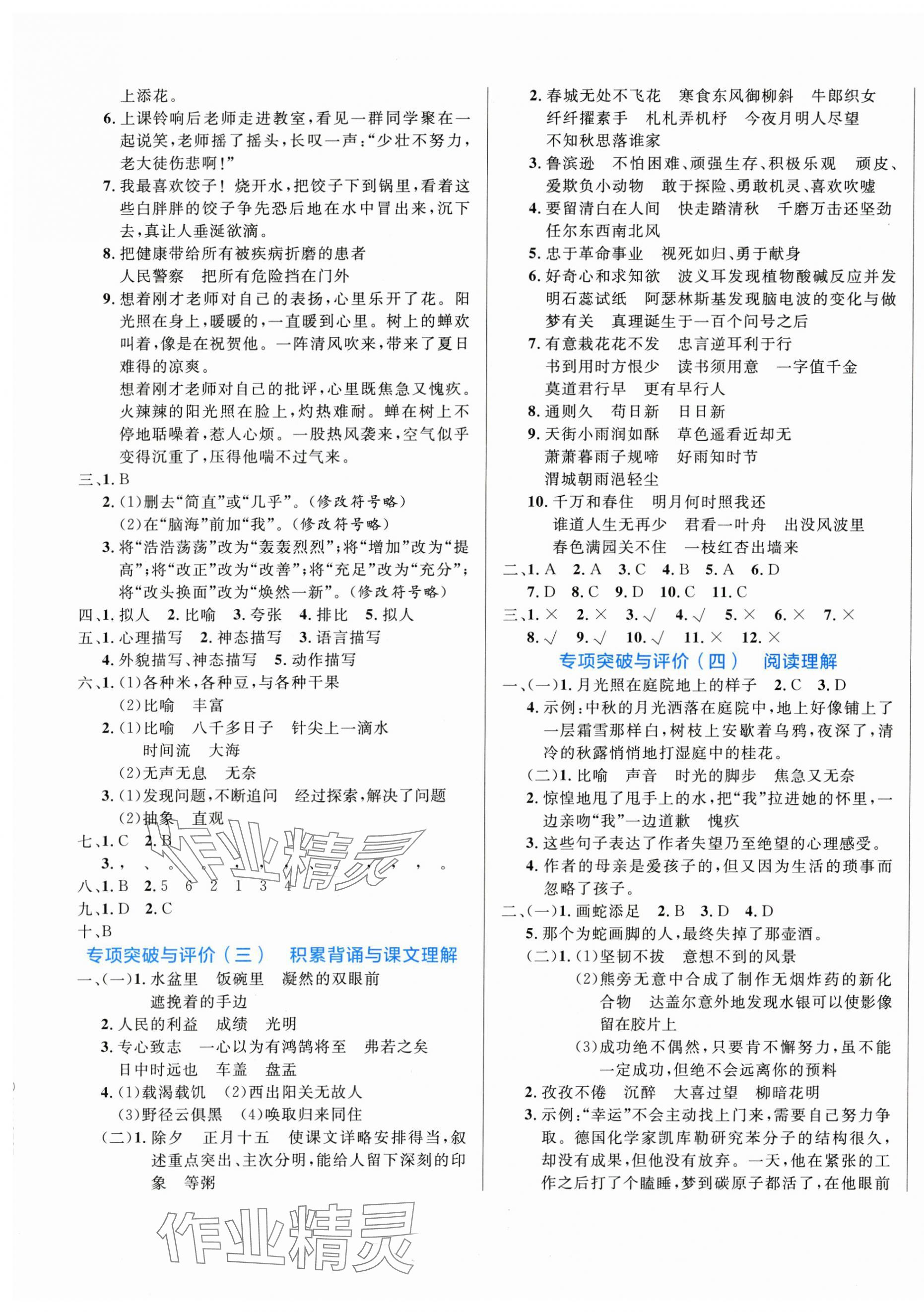注:目前有些书本章节名称可能整理的还不是很完善,但都是按照顺序排列的,请同学们按照顺序仔细查找。练习册 2024年黄冈名卷六年级语文下册人教版 答案主要是用来给同学们做完题方便对答案用的,请勿直接抄袭。